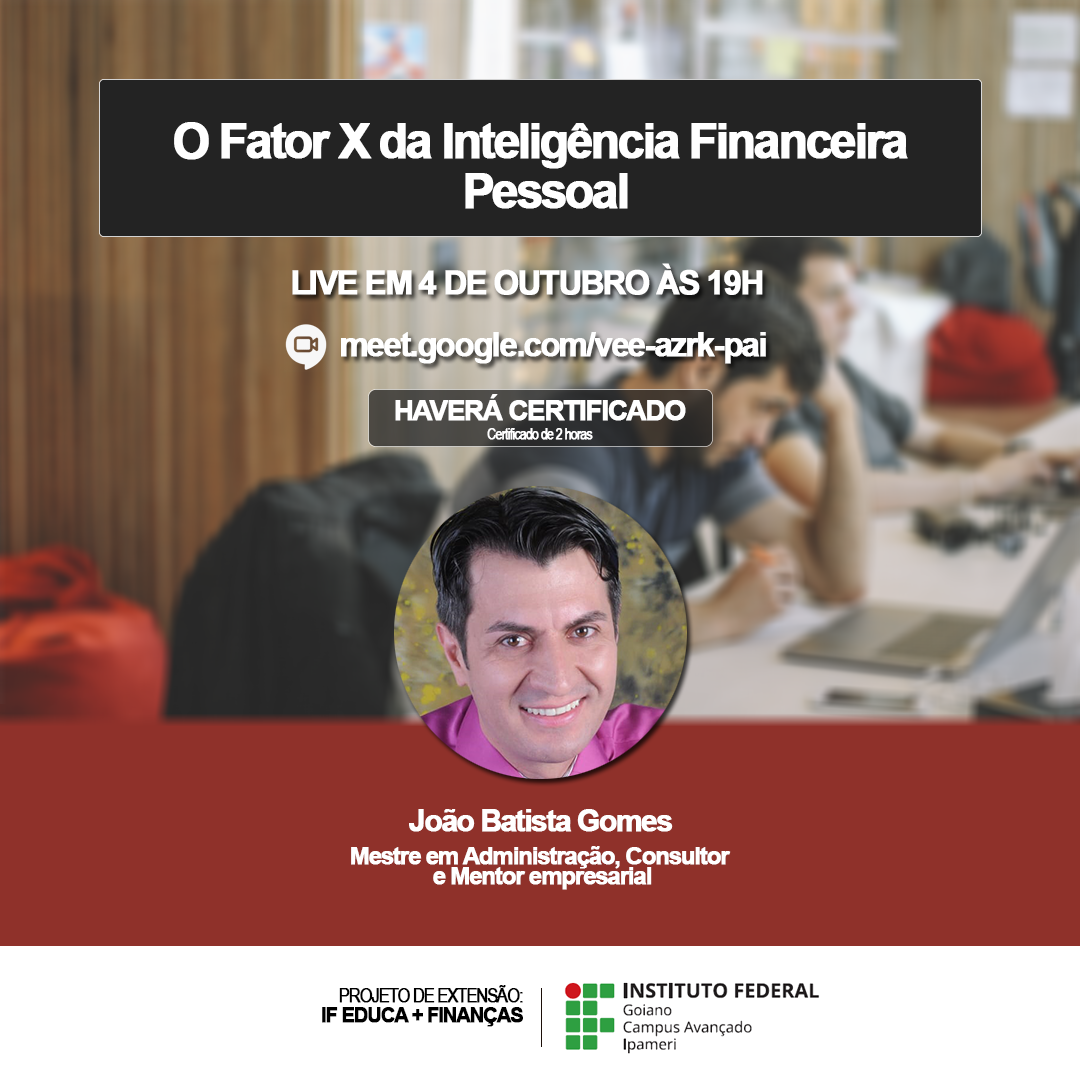 Esta live é uma das ações do Projeto de Extensão IF EDUCA + FINANÇAS que visa contribuir para uma mudança de atitudes individual e social em relação à gestão das finanças...