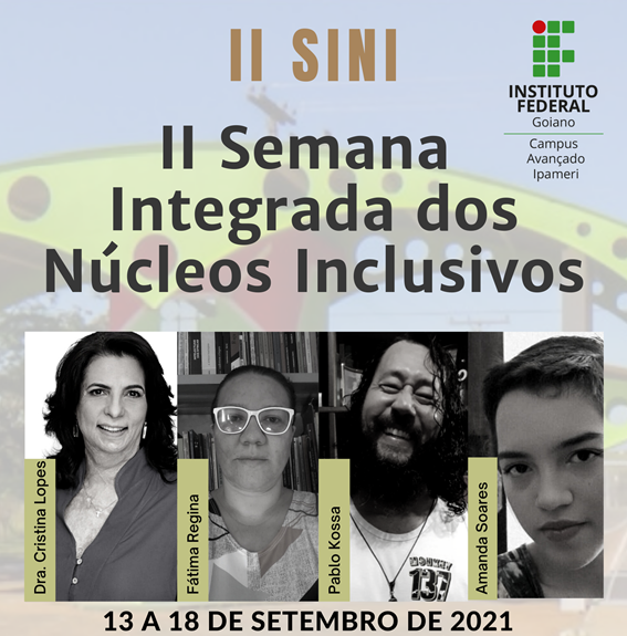 A segunda Semana Integrada dos Núcleos Inclusivos (SINI), sob o tema "Desafios e Possibilidades", ocorre entre os dias 13 e 18 de setembro de 2021.