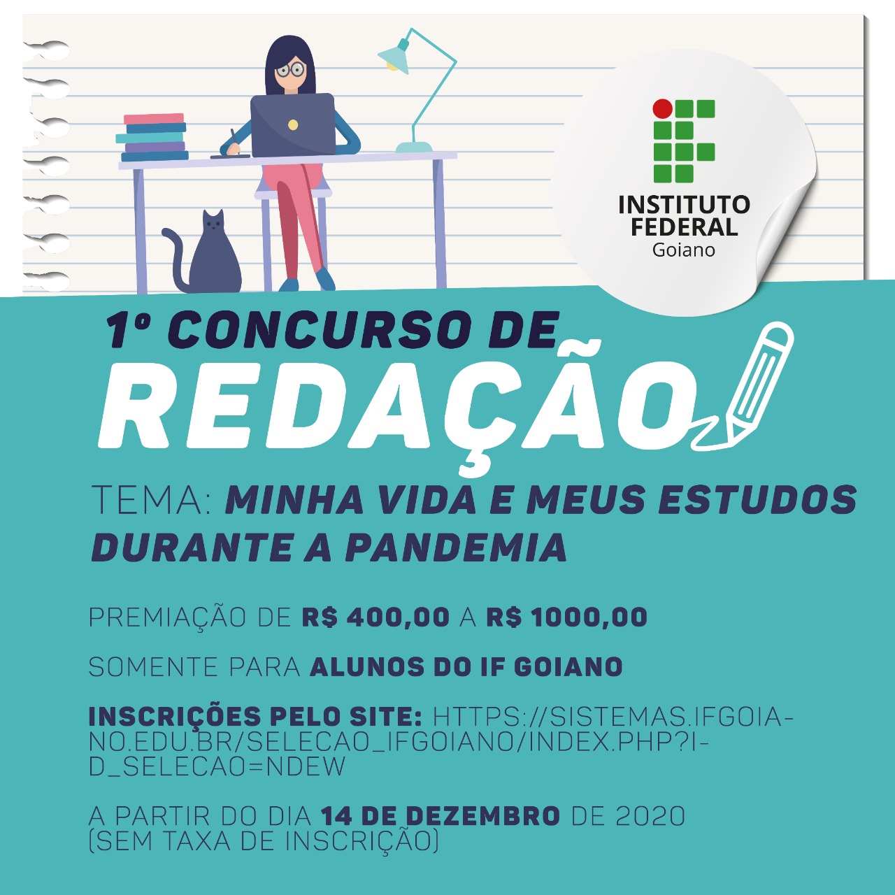 Mais uma oportunidade para quem não se inscreveu no 1º Concurso de Redação do Instituto Federal Goiano (IF Goiano).