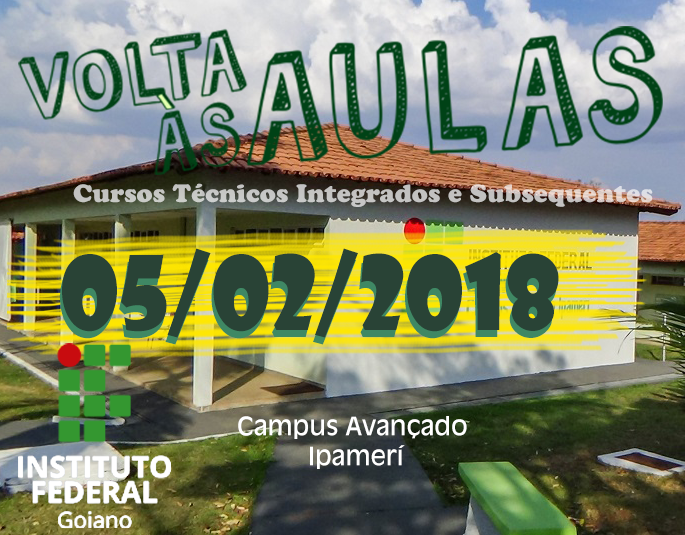 O início das aulas para os cursos técnicos integrados e subsequentes ocorrerá em 05 de fevereiro.