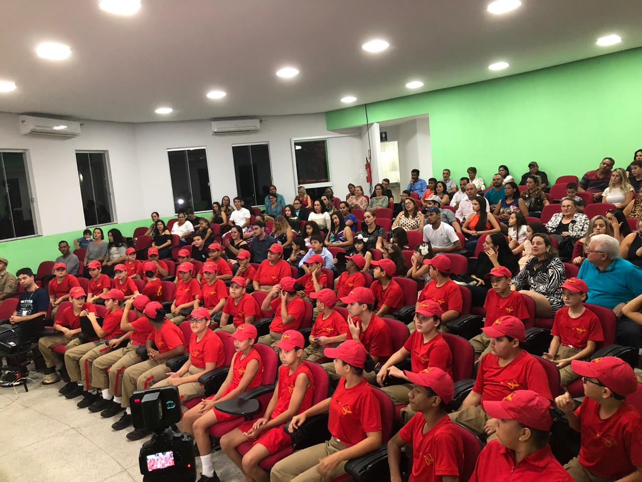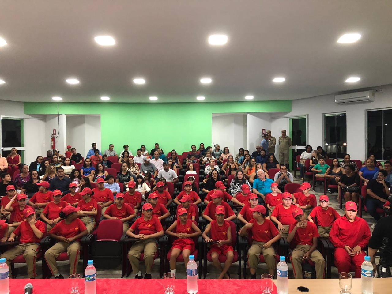 Depois da composição da mesa foi apresentado ao público os uniformes que serão usados pelos novos alunos nas atividades do projeto. Dando sequência a cerimônia as autoridades destacaram a importância do PROEBOM para as crianças e adolescentes do município. No final do evento foi feita uma foto oficial com os alunos junto as autoridades para eternizar o momento em que se inicia uma nova fase na vida desses pequenos cidadãos.