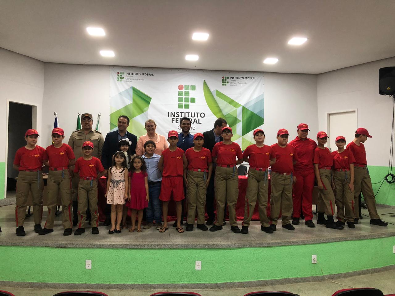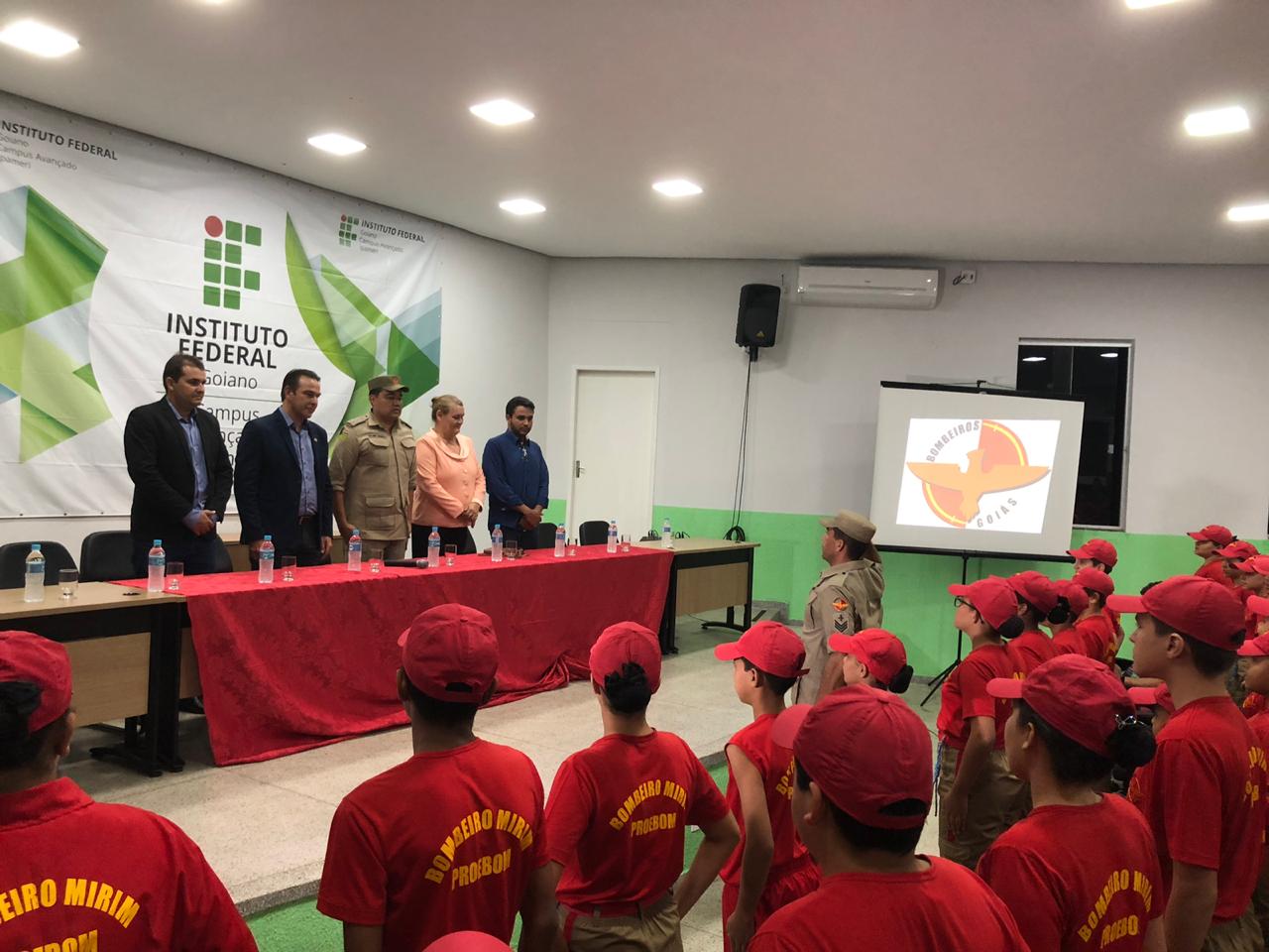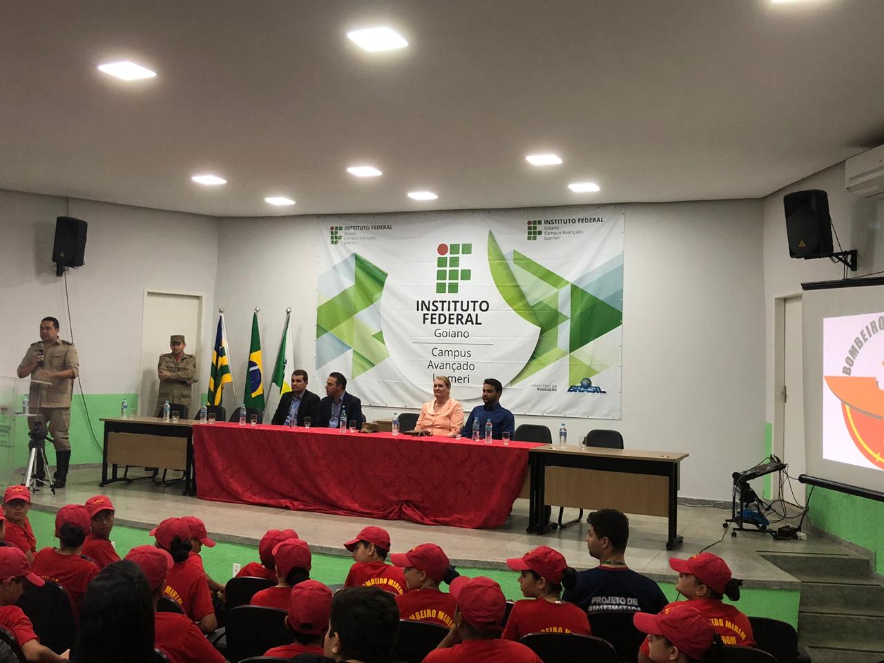 A cerimônia iniciou-se com a entrada dos bombeiros mirins no auditório do Campus, em seguida a mesa foi composta pelas autoridades da cidade, representante da 23ª CIBM 1° Tenente Rodrigo Andre Miño Guerra, representantes da câmara municipal de Ipameri vereadora Mara Ney e vereador Alison Rosa, representante da prefeitura municipal de Ipameri vice-prefeito Dr. José Roberto Costa Marot e representante do IF Goiano - Campus Avançado Ipameri diretor substituto Rogério Carneiro Machado.