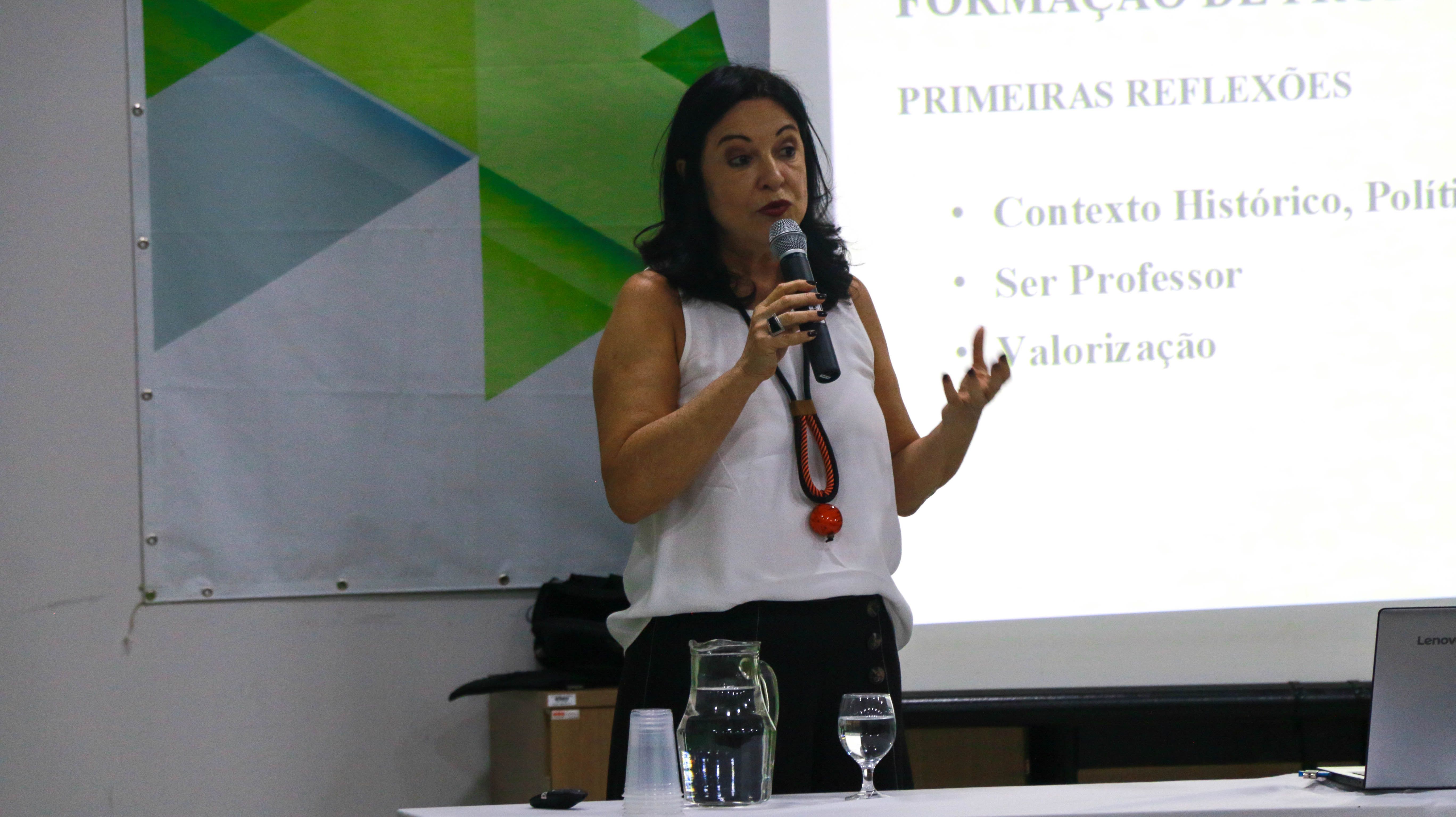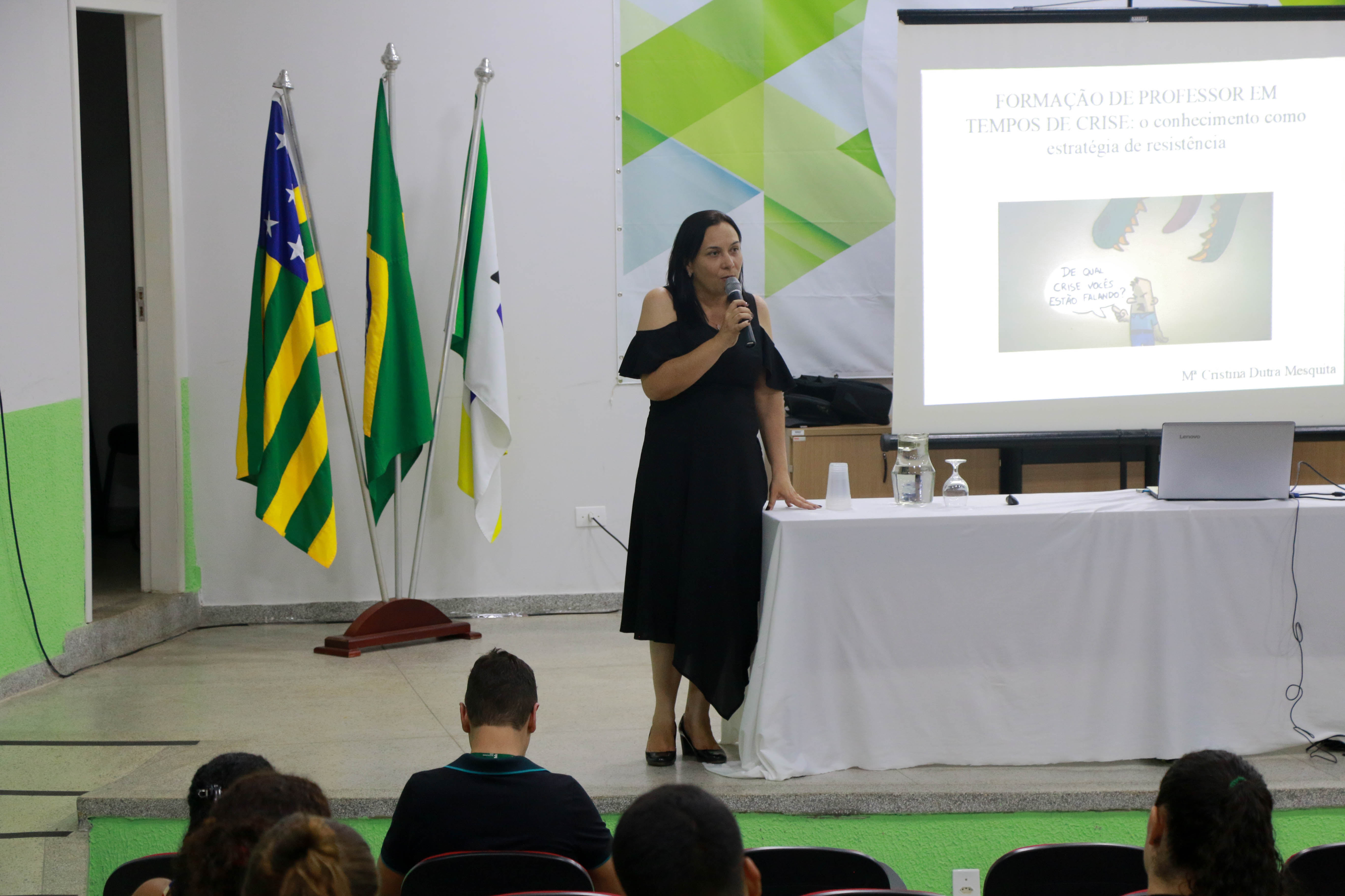 Aula inaugural teve palestra com o tema "O Conhecimento como Estratégia de Resistência", ministrada pela a Profa. Drª Mª Cristina Dutra Mesquita (PUC -GO - EFPH - PPGE) .