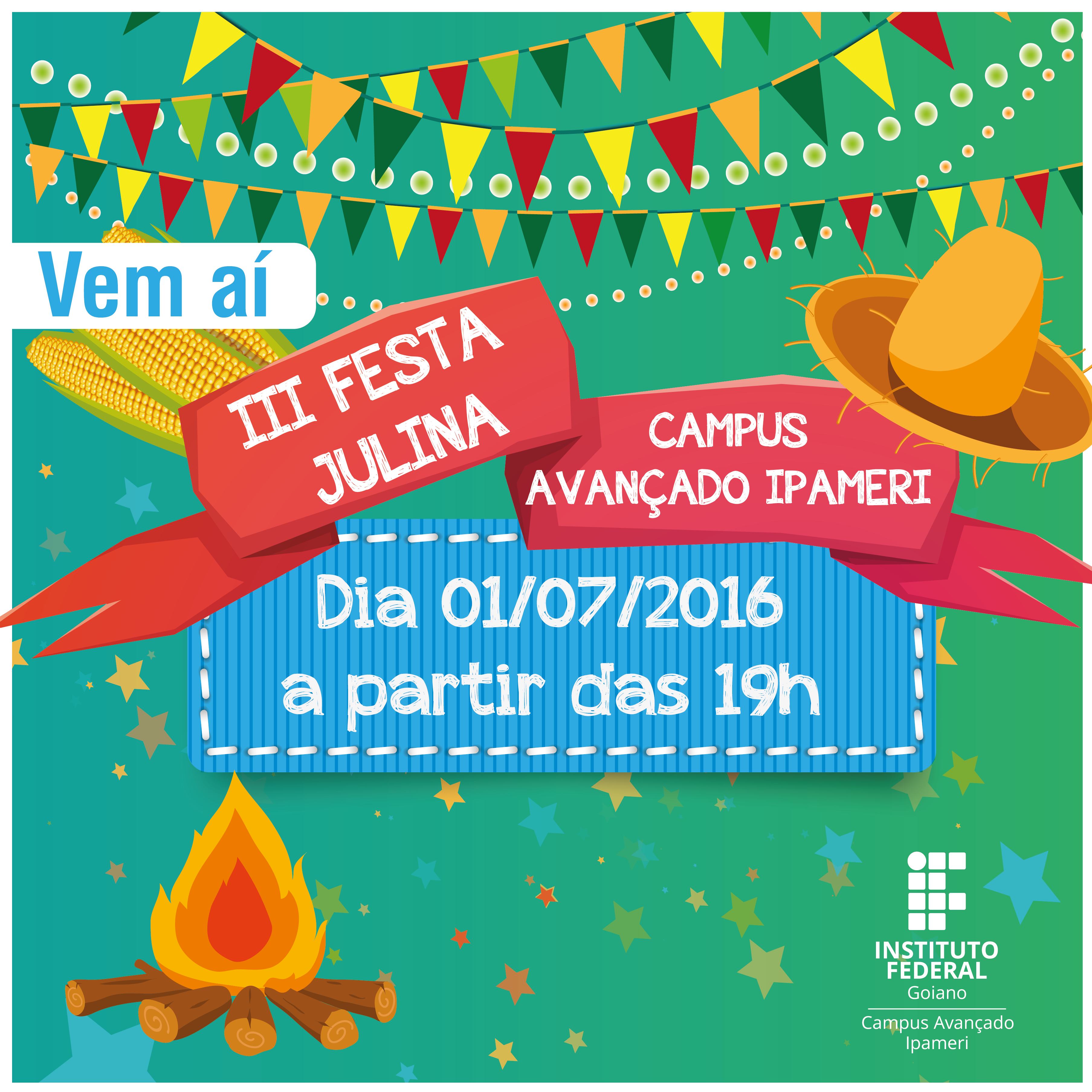 Acontece na próxima sexta-feira, dia 01 de julho, a partir das 19:30hs, a 3ª Festa Julina do IF Goiano – Campus Avançado Ipameri.