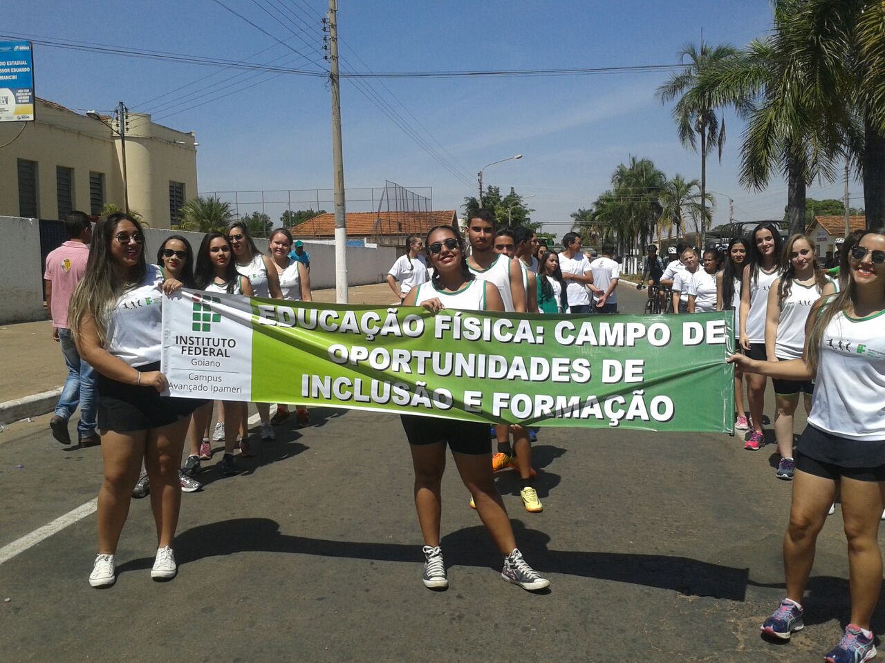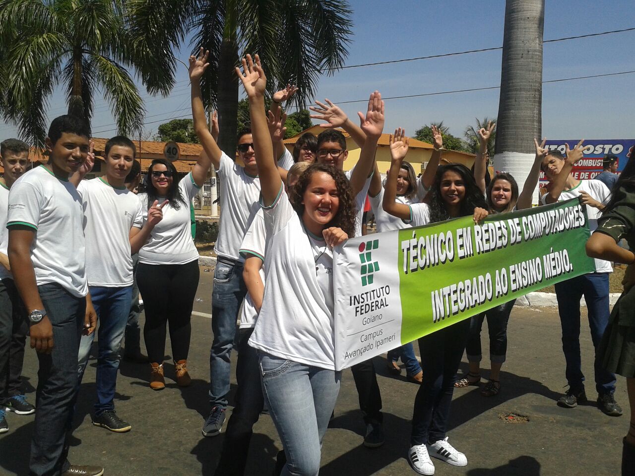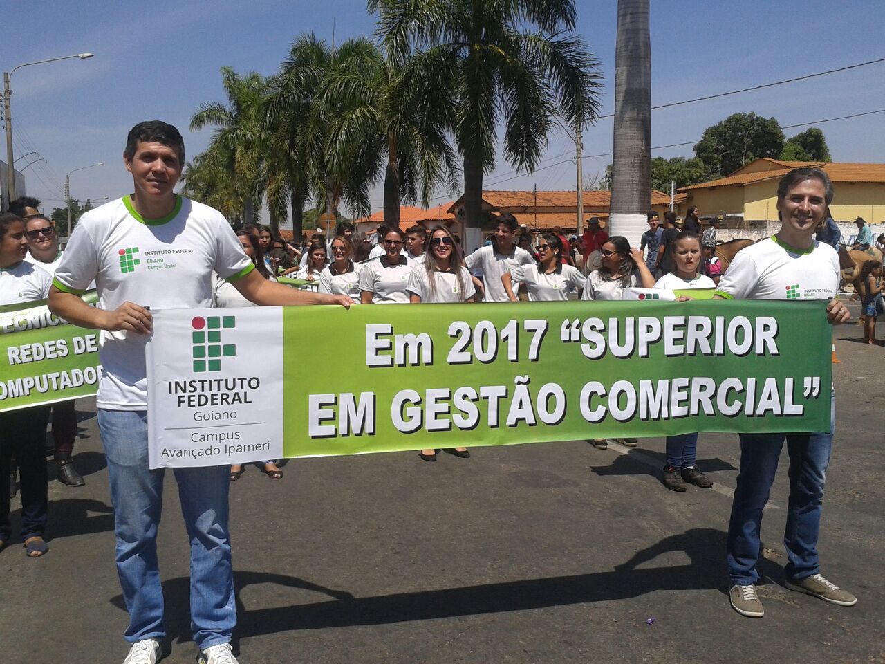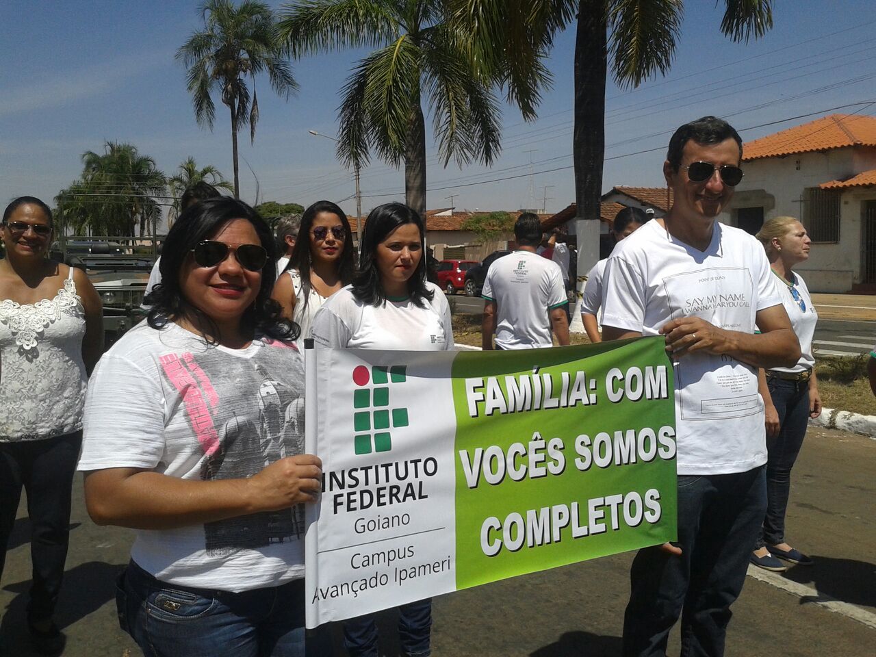 O Instituto Federal Goiano - Campus Avançado Ipameri, mais uma vez, participou do desfile de 7 de setembro. Neste ano, além dos tradicionais blocos compostos pelos alunos e alunas dos Cursos Técnicos em Comércio e Redes de Computadores Integrados ao Ensino Médio, Cursos Técnicos em Administração e Redes, tivemos também o bloco da família.