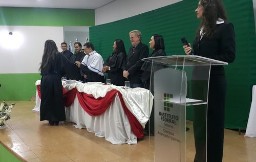 Trataram-se das turmas dos Cursos Técnicos em Administração, em Informática e em Redes de Computadores, que homenagearam a Sra. Tânia Márcia de Feitas Montes e os Professores Rhennan Lazaro e William Roberto da Silva. O evento, que aconteceu no auditório do Campus, contou com a presença do Reitor do Instituto Federal Goiano, Prof. Dr. Vicente Pereira de Almeida, do Pro Reitor de Extensão, Prof. Dr. Sebastião Nunes e de Diretores dos Campi Catalão e Urutaí. Também estiveram presentes, além de familiares dos formandos e comunidade em geral, o Bispo da Diocese de Ipameri, Dom Guilherme Antônio Werlang, militares e representantes do Executivo e do Legislativo do município. Agradecemos a todos que prestigiaram momento tão especial. Aos formandos, nossos parabéns e nossos votos de sucesso na nova etapa profissional que se inicia.