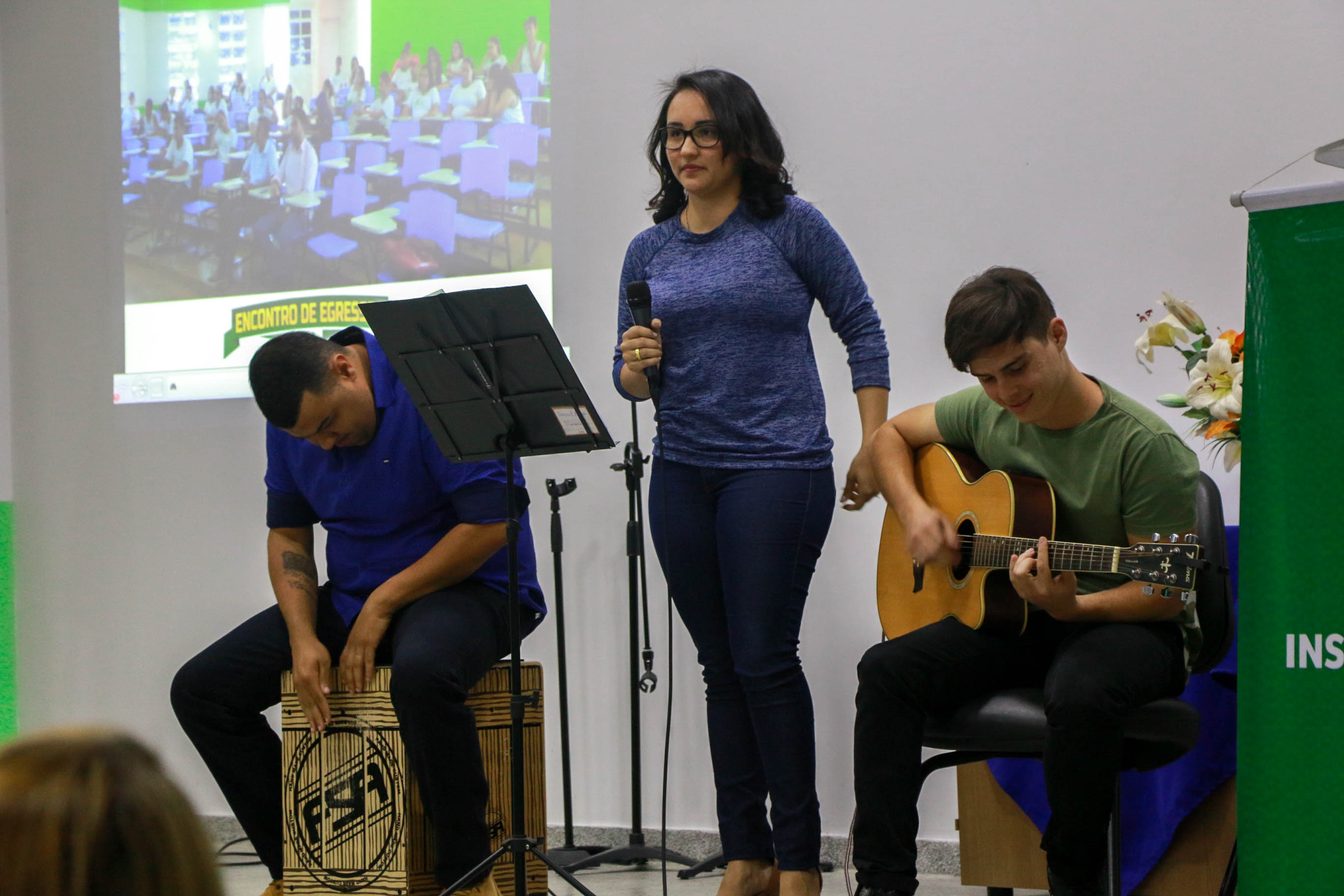 Todo o encontro contou com o acompanhamento musical proporcionado pelos alunos do Curso Superior de Tecnologia em Gestão Comercial, Lorena Rezende, Matheus Estrela e Marcos Arcanjo.