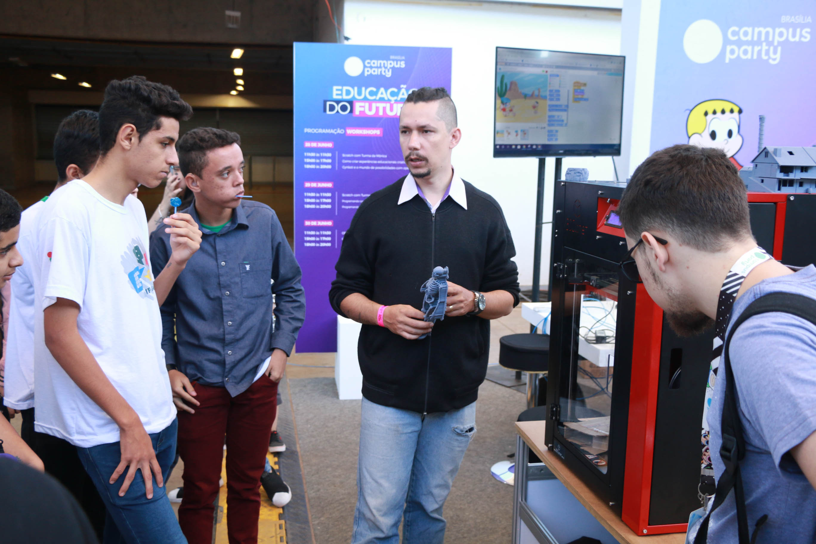 Os projetos de inovação na Educação com o uso de tecnologias digitais estão mudando aos poucos a experiência dos alunos em sala de aula. Algumas dessas tecnologias, aliadas a exemplos concretos de como podem ser usadas nas aulas de matemática e informática para gerar conhecimento e engajamento, foram destaque na Campus Party 2018 no Mané Garrincha em Brasília. O festival de inovação e criatividade é a maior experiência tecnológica realizada no país, unindo jovens geeks, escolas e profissionais de diferentes áreas. Comprometidos com essa tipo de formação e aprendizagem, os alunos dos Cursos Redes de Computadores e Comércio Integrados ao Ensino Médio, do Instituto Federal Goiano, Campus Avançado Ipameri, foram convidados pelos professores Greiton Toledo e William Roberto para participarem do evento. Os trinta e seis alunos puderam conversar com o público, conhecer projetos inovadores de matemática e informática. Mais do que isso, visualizaram diferentes tipos de representações de linguagens de programação e matemática, assistiram palestras sobre o empreendedorismo, conheceram novidades do universo da robótica e puderam entender um pouco melhor o que há por trás dos jogos digitais. Para os alunos, conforme relatório, foi uma experiência incrível, que congregou formação, conhecimento e inovação. É preciso incentivar mais eventos como estes que dialoga não só com o conhecimento científico, mas também tecnológico - destaca Carolina Ferreira - aluna do Curso de Redes de computadores".