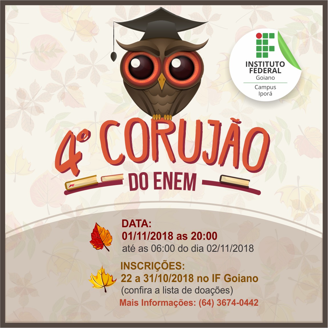 Acontece na madrugada do dia 1º para 02 de novembro o “Corujão” para o Exame Nacional do Ensino Médio (Enem), promovido pelo IF Goiano – Campus Iporá. Estudantes do ensino...