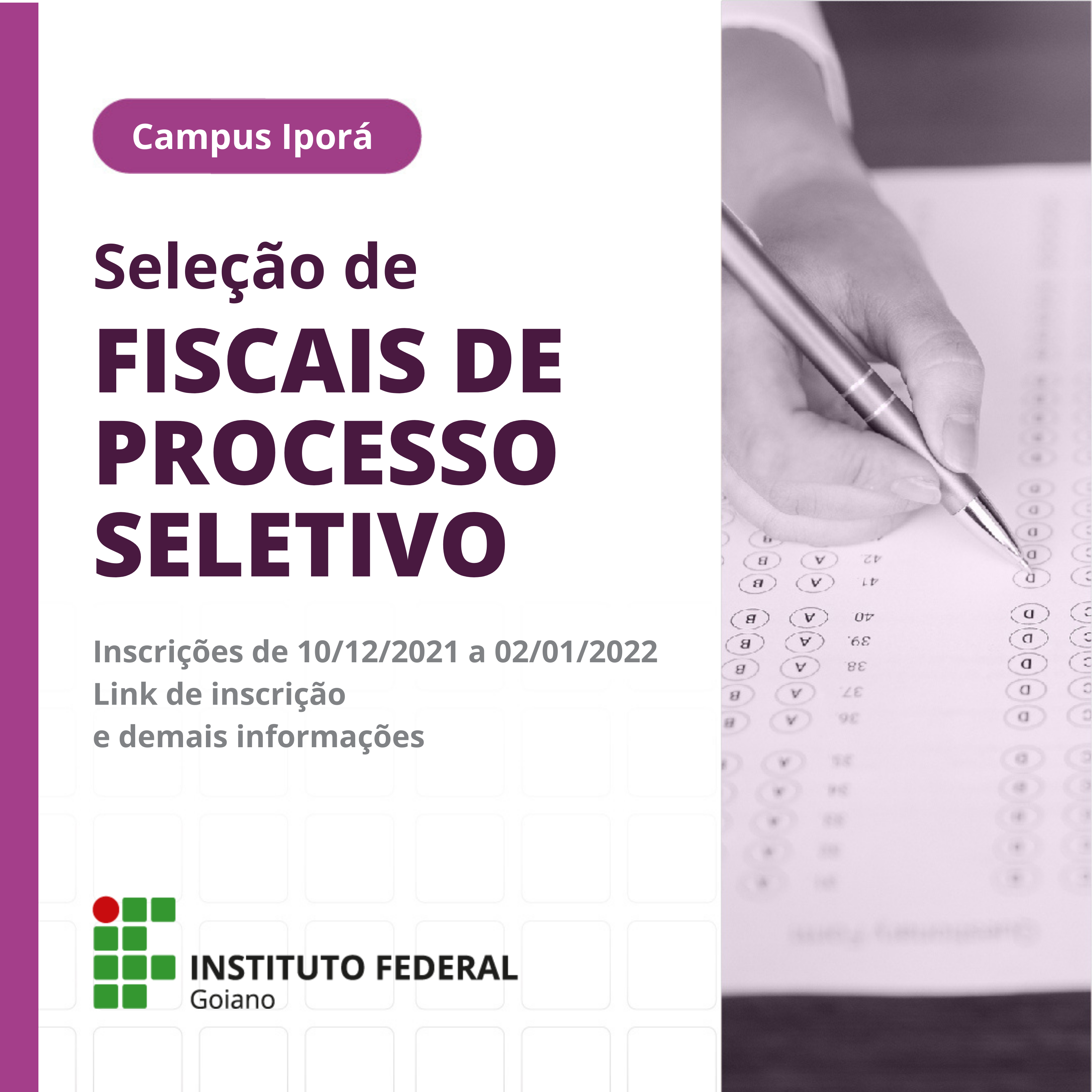 Os fiscais atuarão na prova do dia 09 de janeiro de 2022.