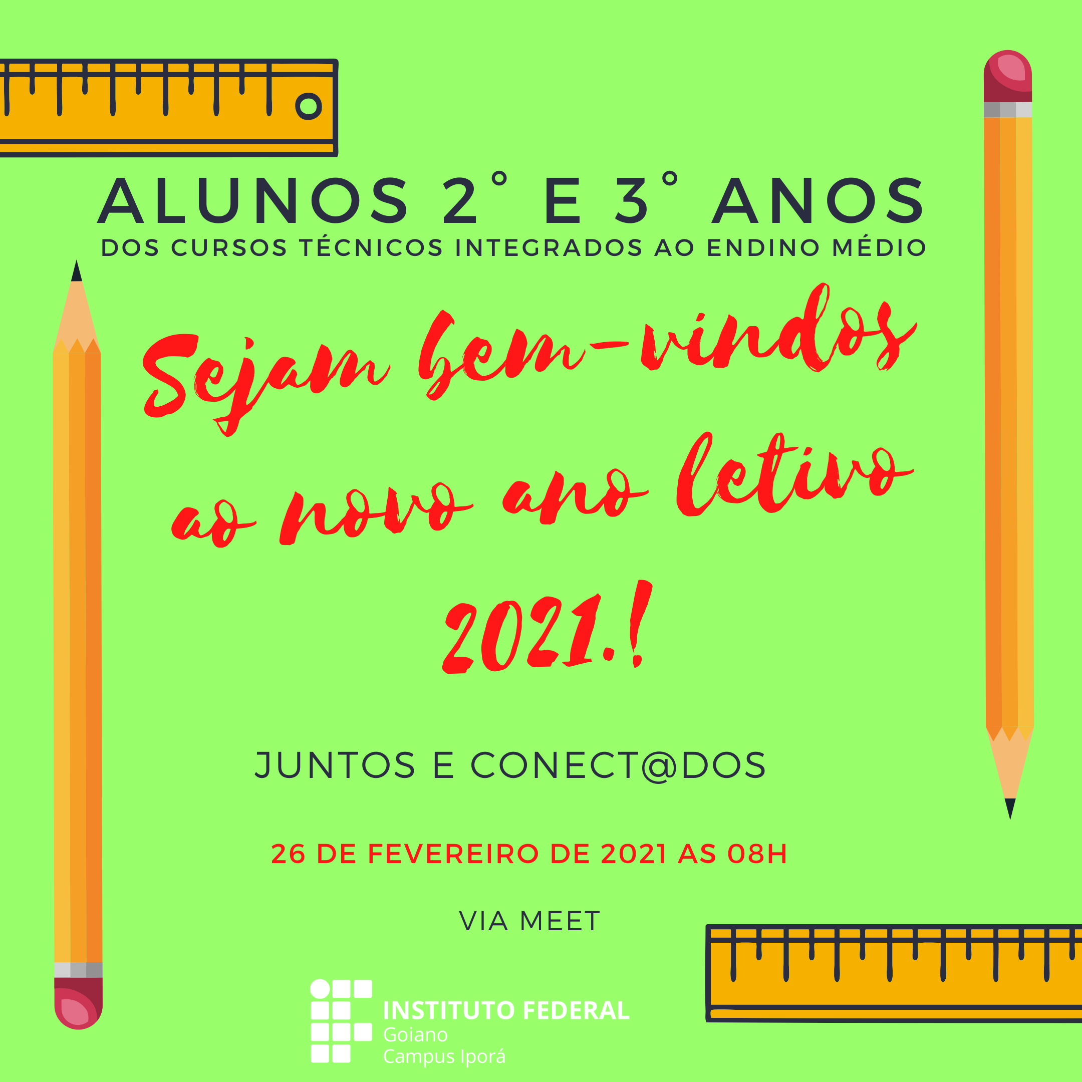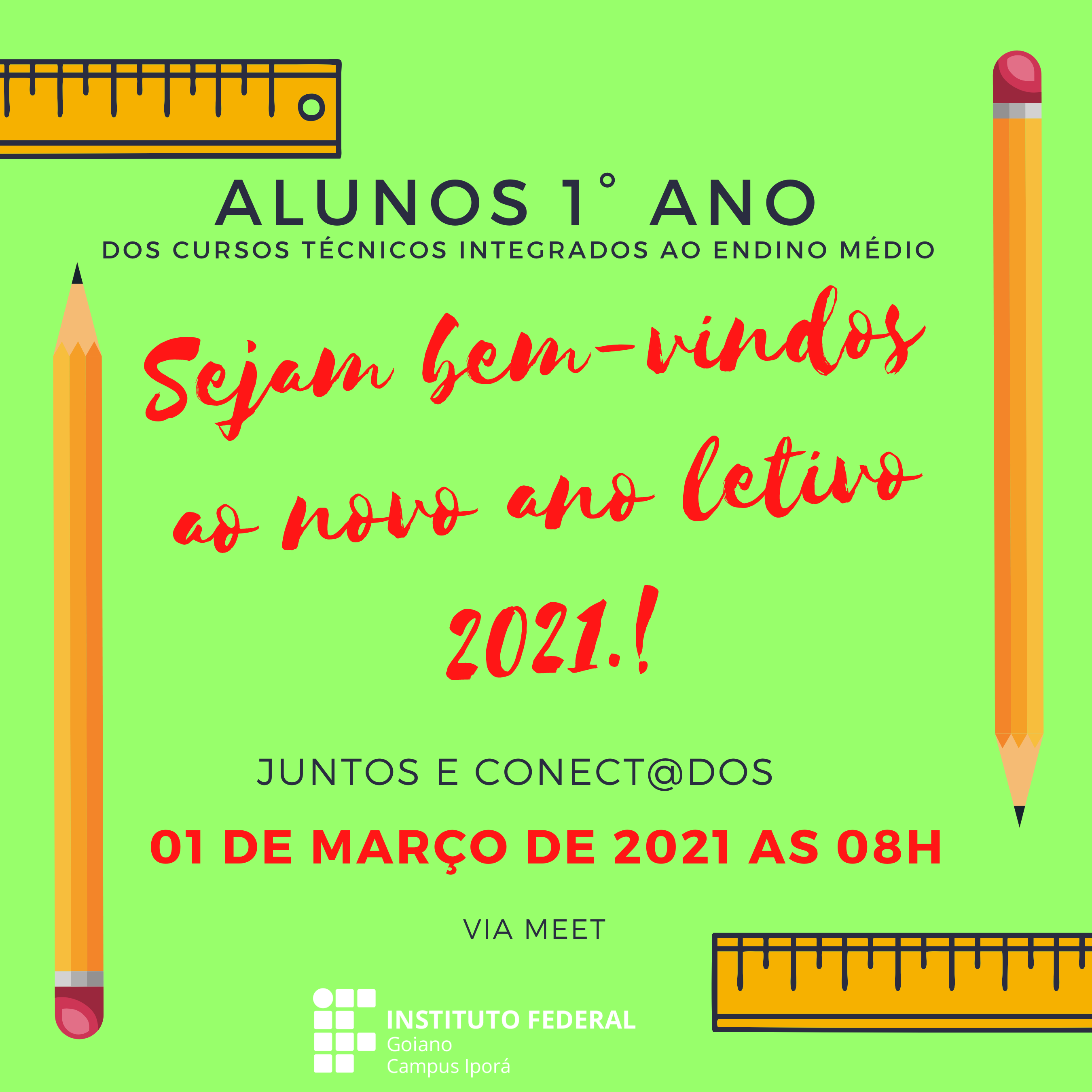 Na manhã do dia 01/03 segunda-feira, às 08h, terá a Aula Inaugural dos alunos do 1° ano dos cursos técnicos integrados ao ensino médio durante a " Semana de Acolhimento dos alunos...