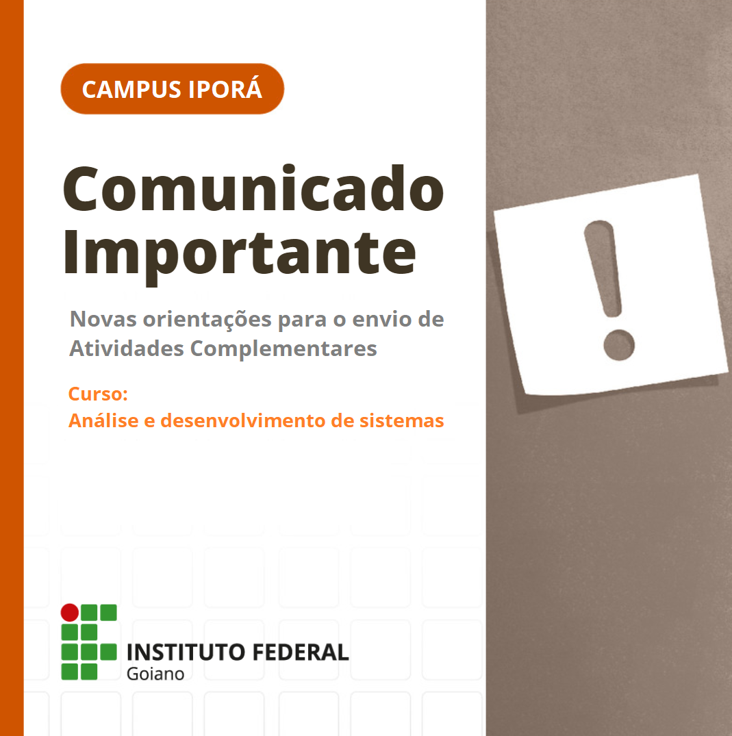 A coordenação de Atividades Complementares (AC) do curso de Tecnologia em Análise de Desenvolvimento de Sistemas (TADS) emitiu comunicado com novas orientações para o envio de...