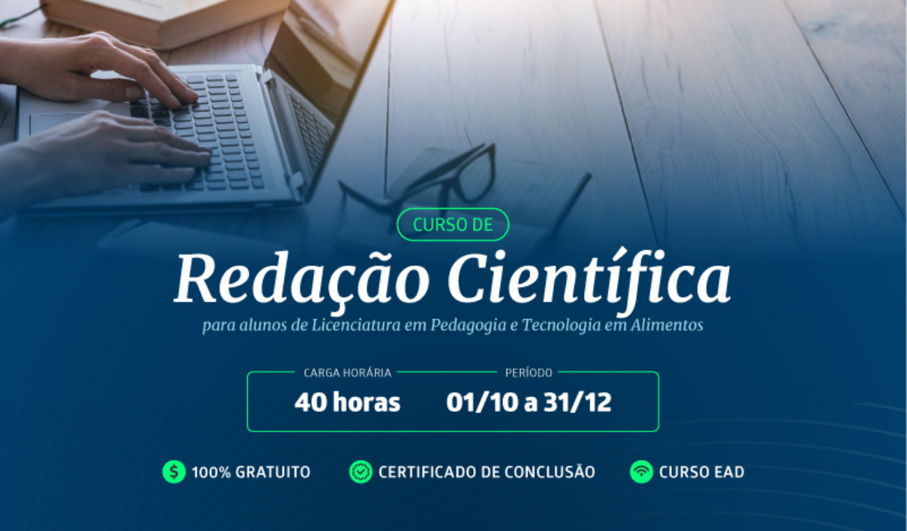 Prazo para se inscrever termina dia 5 de outubro. Vagas são para discentes dos cursos superiores de Alimentos e Pedagogia.