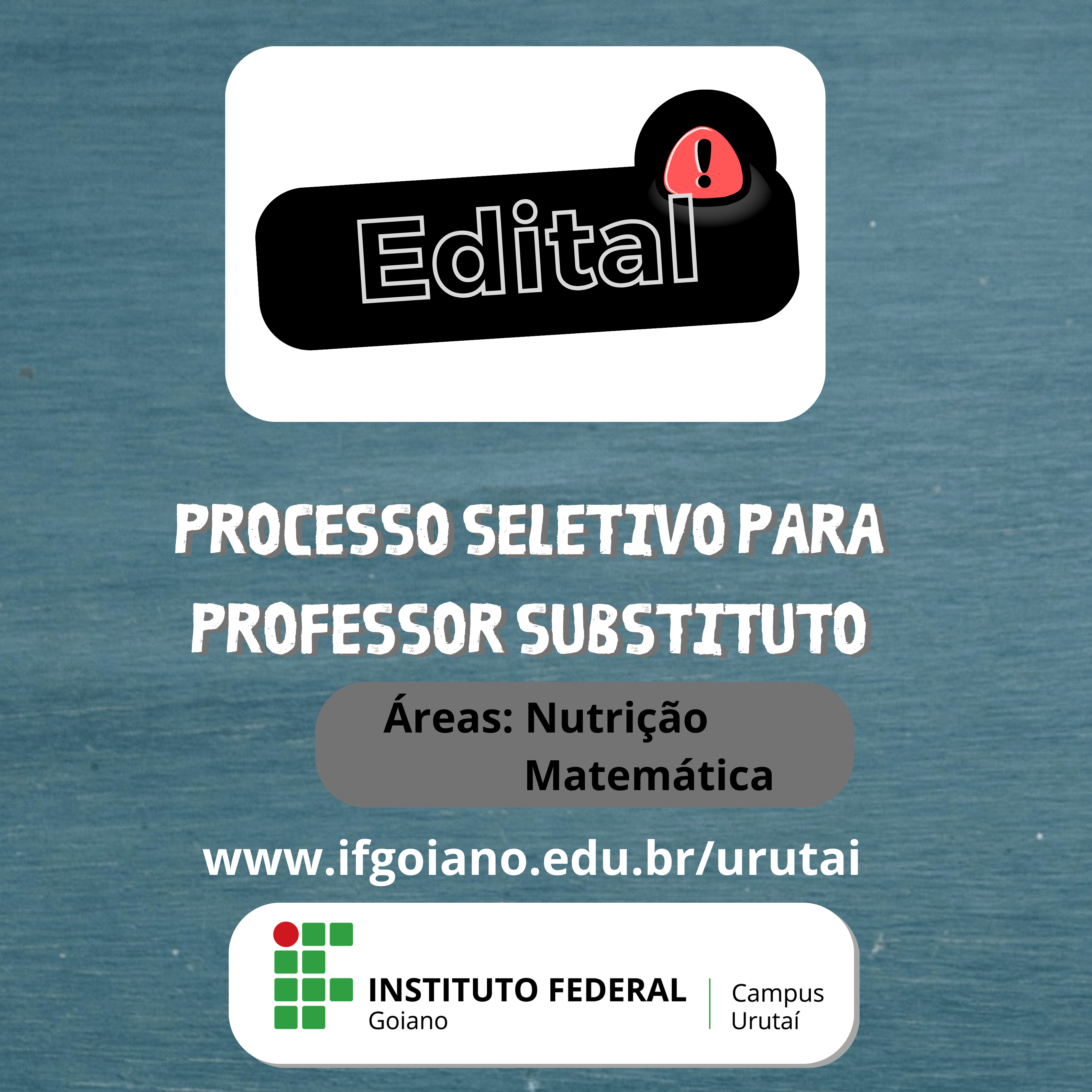 O Instituto Federal Goiano (IF Goiano) - Campus Urutaí lança Edital de Processo Seletivo para contratação de Professor Substituto, por tempo determinado.