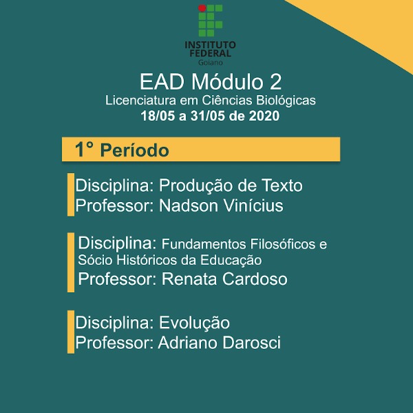 O IF Goiano Campus Posse torna público as disciplinas que farão parte do Módulo II das aulas na modalidade EaD