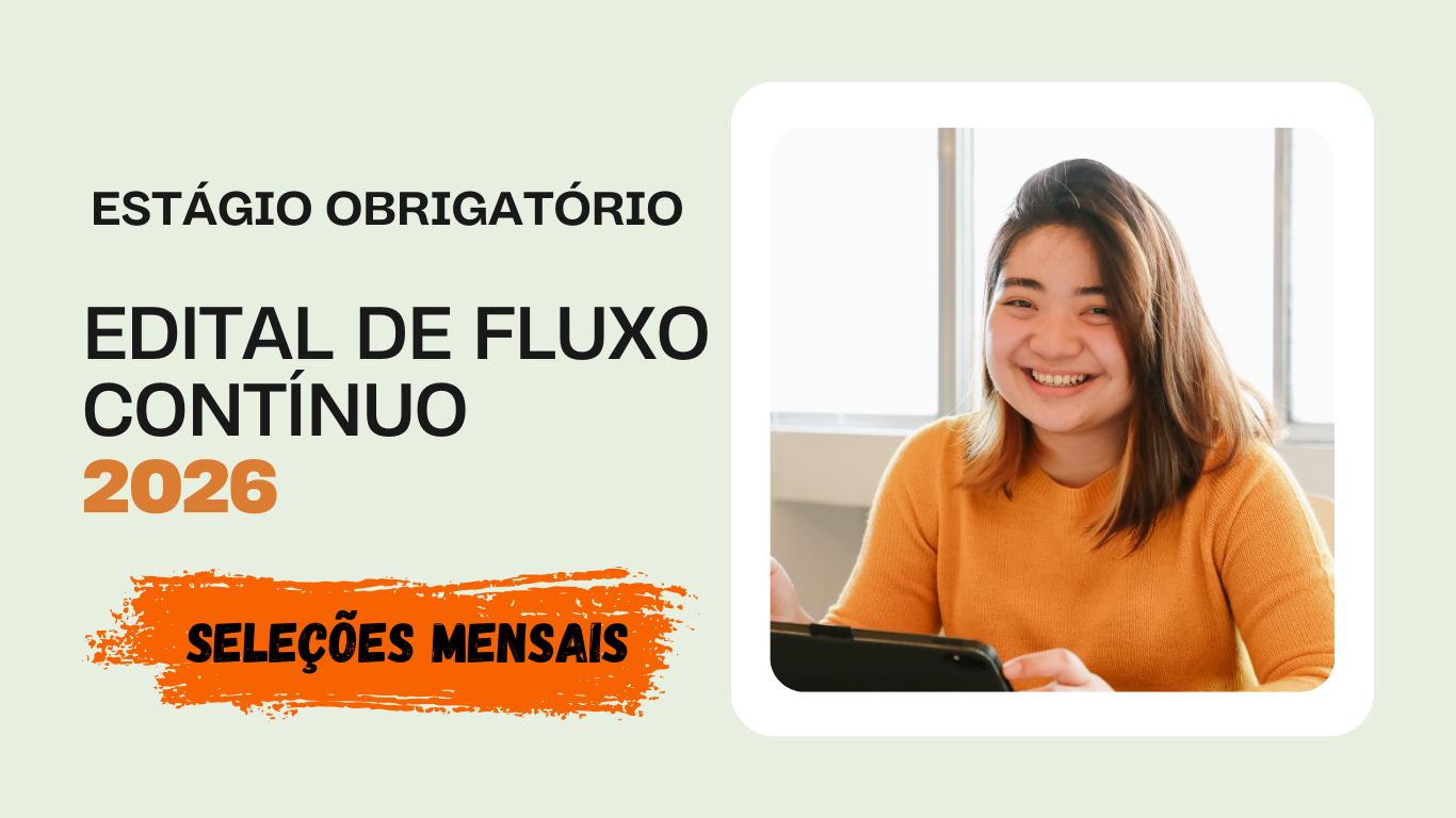 A seleção para Estágio Obrigatório ocorre conforme o regramento do edital perante o quadro de vagas ofertadas mensalmente. O edital tem validade até dezembro de 2026.