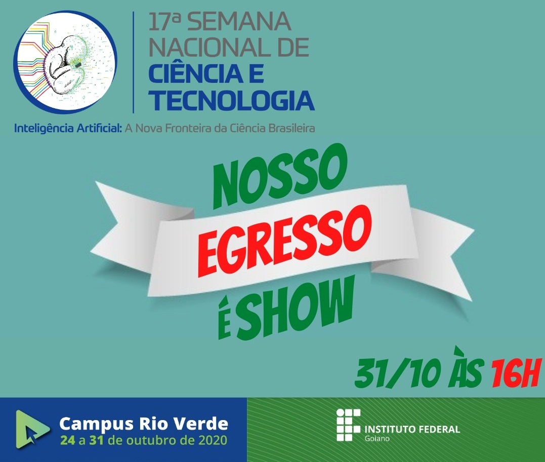 A 17ª Semana Nacional de Ciência e Tecnologia, promovida pelo Campus Rio Verde, terá em sua programação o “Nosso Egresso é Show”, um encontro online de ex-alunos da...