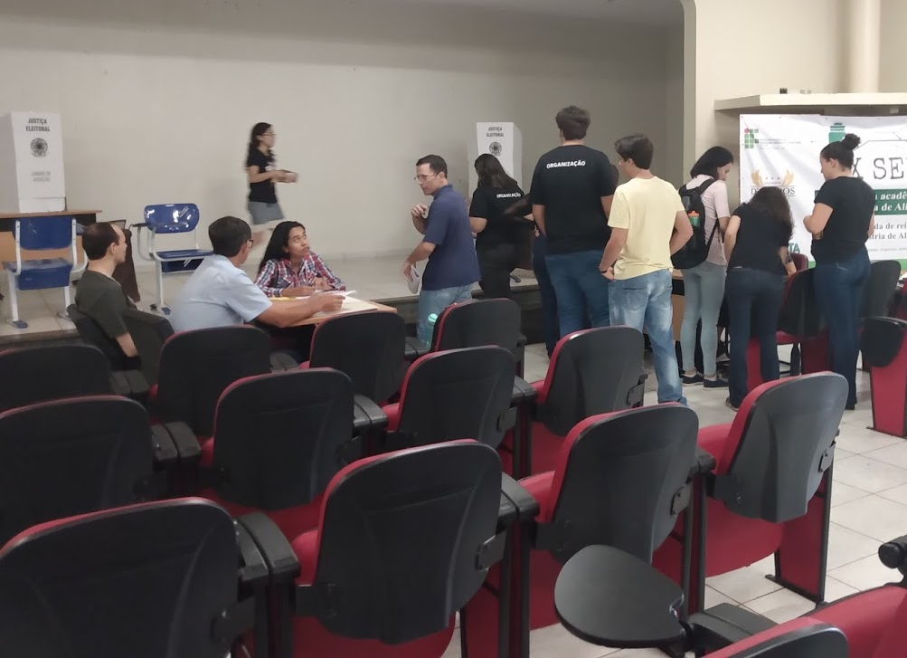 No Campus Rio Verde a votação está acontecendo no salão social. Servidores efetivos e alunos da instituição têm até às 22h para votar.