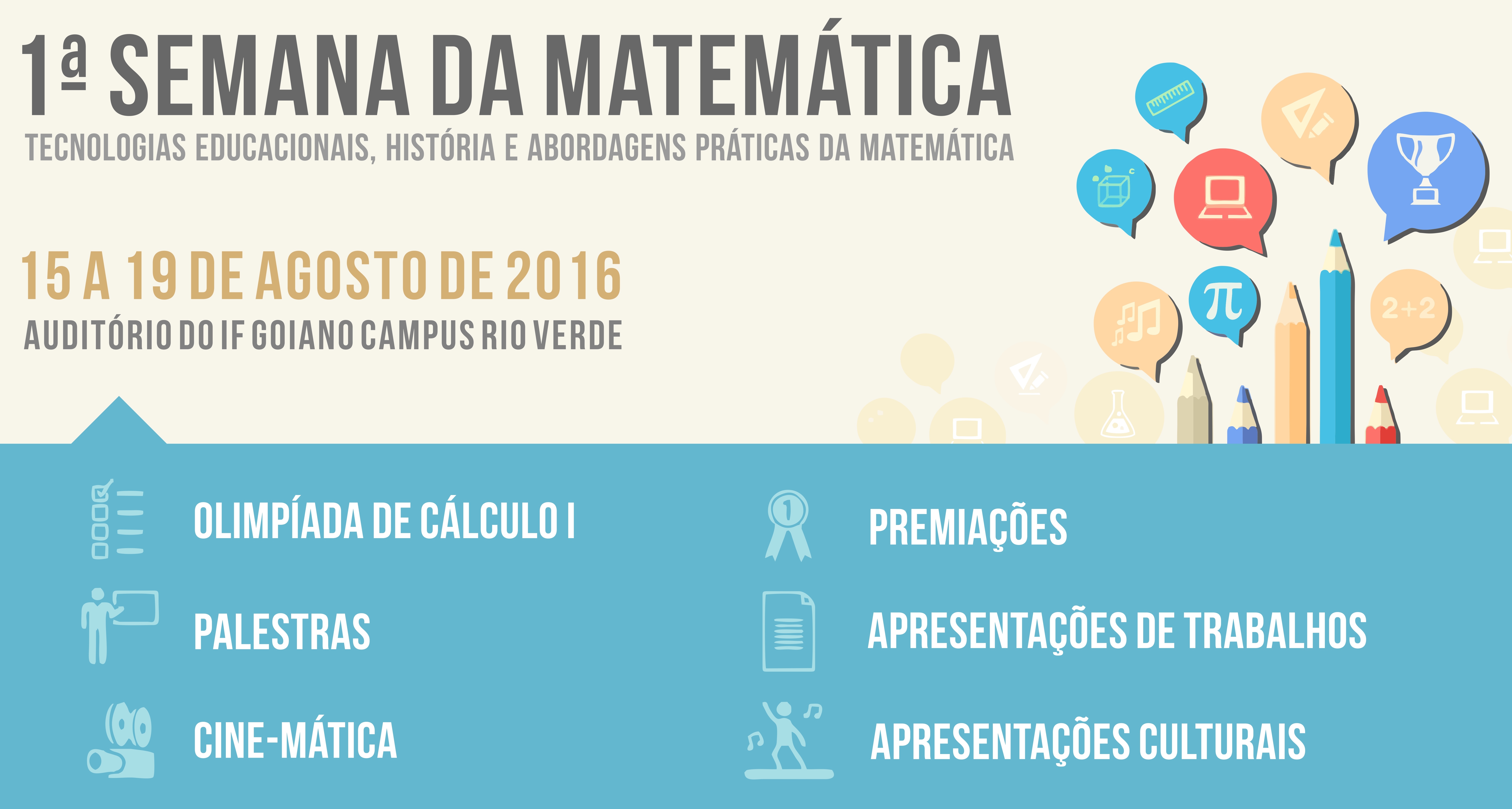 Tecnologias educacionais, história e abordagens práticas da Matemática é o tema 1ª Semat que ocorrerá entre 15 e 19 de agosto.