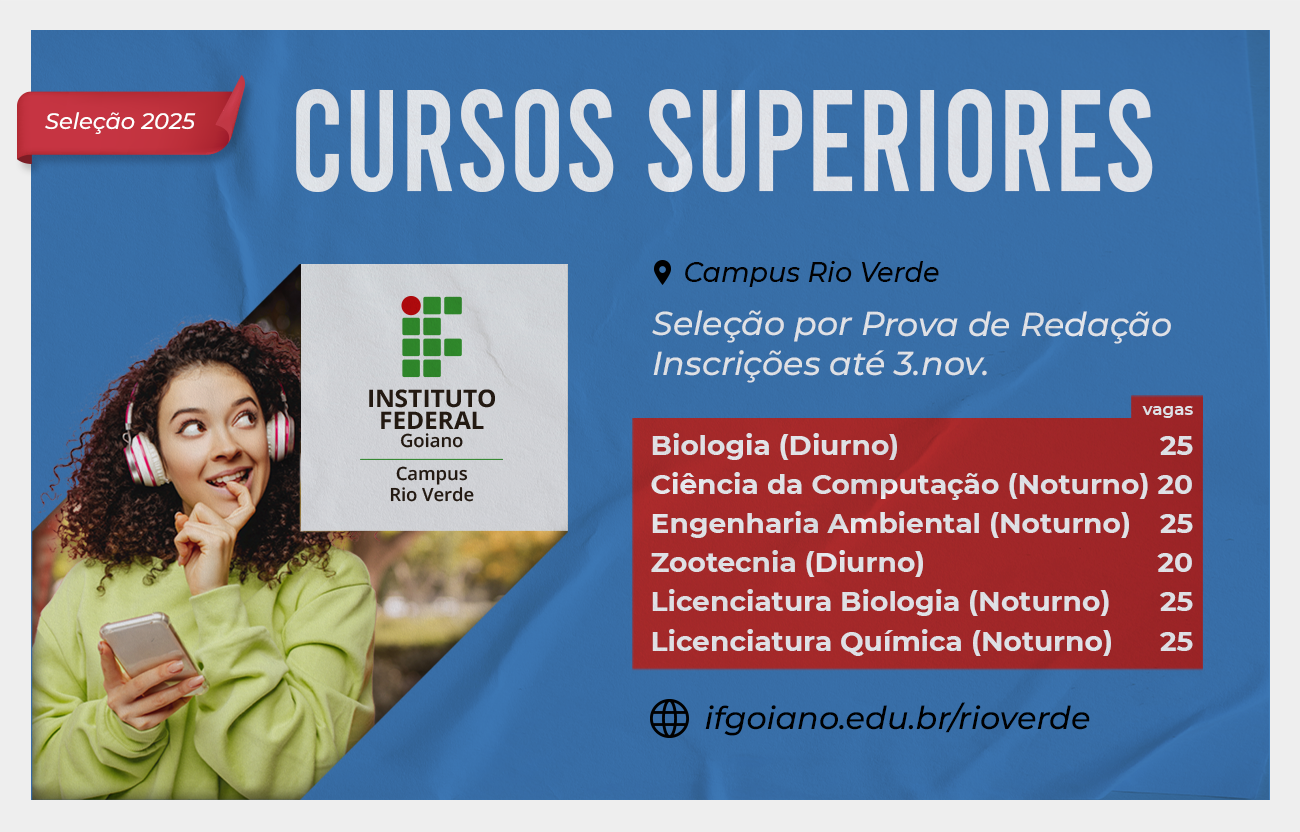As vagas são para os cursos superiores em Ciências Biológicas (bacharelado e licenciatura); Ciência da Computação, Engenharia Ambiental, Licenciatura em Química e Zootecnia.