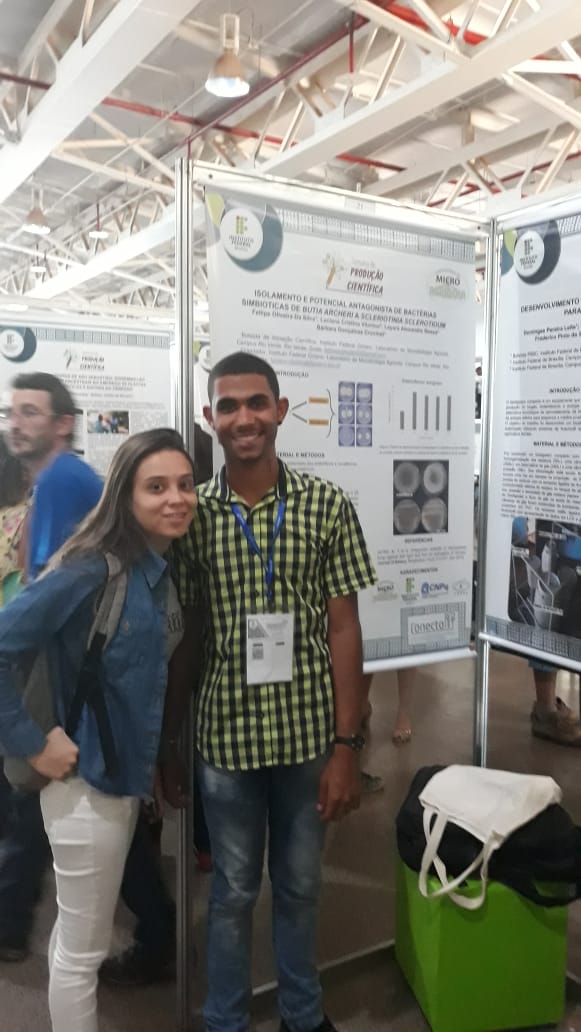 Os acadêmicos do Campus Rio Verde, Fellipe Oliveira da Silva (Agronomia) e Bárbara Gonçalves Cruvinel (Engenharia Ambiental), orientados pela professora Luciana Vitorino, apresentaram o trabalho intitulado “Isolamento e potencial antagonista de bactérias simbióticas de Butia archeri a Sclerotinia sclerotiorum” e foram premiados na categoria melhor trabalho apresentado na área de ciências agrárias.