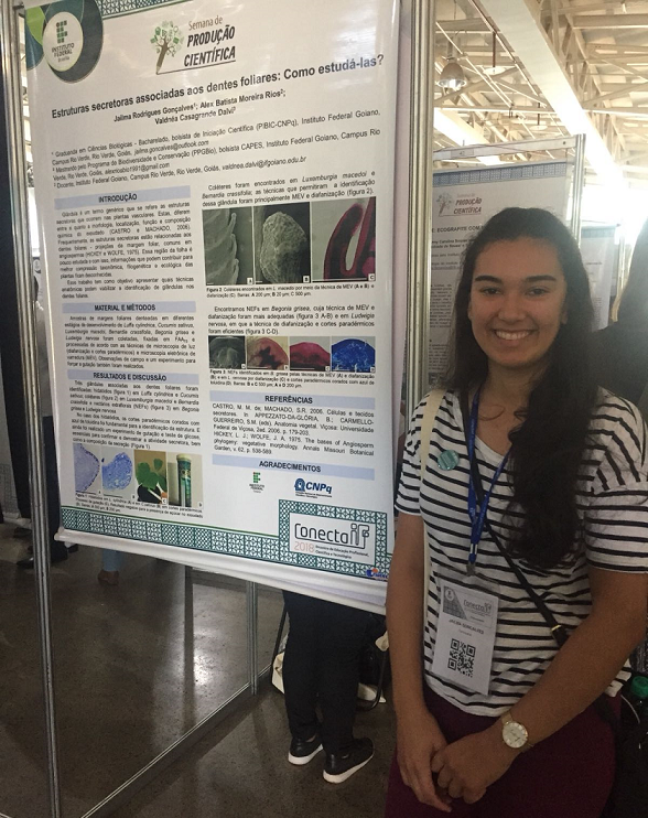 Na categoria melhor trabalho da área de ciências biológicas, a aluna Jailma Rodrigues Gonçalves foi premiada pelo trabalho intitulado “Estruturas secretoras associadas aos dentes foliares: como estudá-las?”, trabalho este orientado pela professora Valdnéa Casagrande.