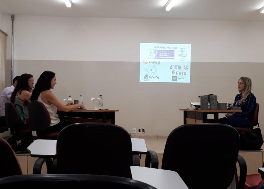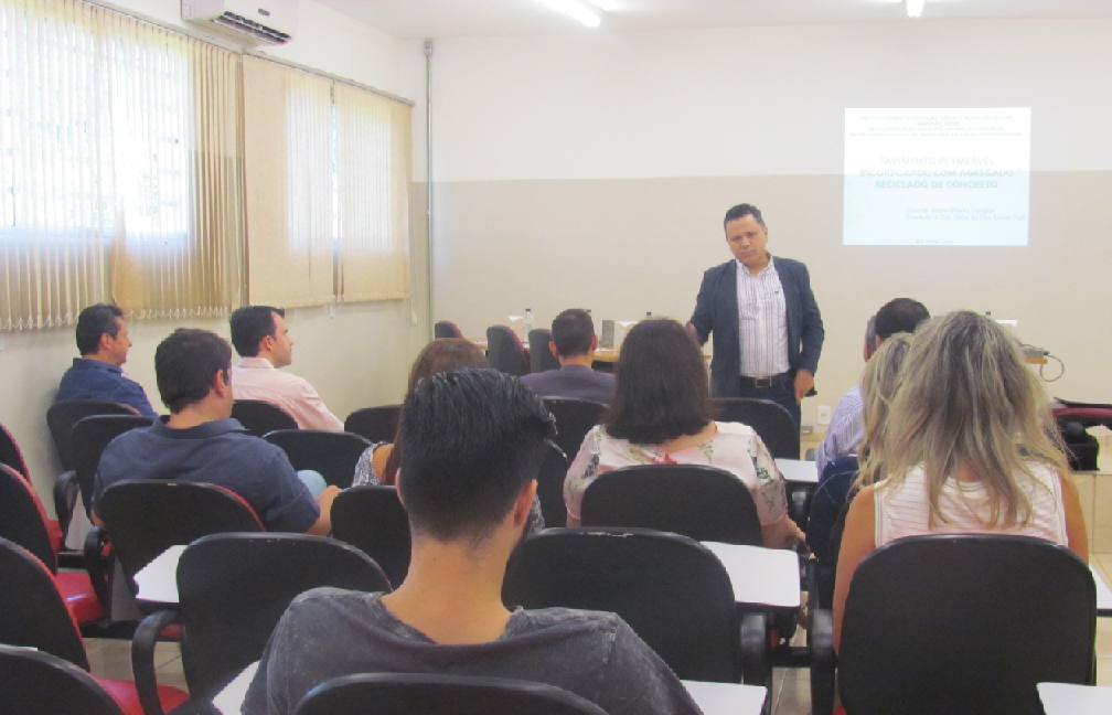 Finalizadas as participações dos dirigentes, Bruna deu início à apresentação do seu tema, que foi desenvolvido a partir da realidade urbana de Rio Verde, e mostrou a importância de investimento na pavimentação com foco nas esferas ambiental, social e econômica. A mestranda apresentou a alternativa do pavimento permeável, que conta com uma estrutura porosa que facilita o reabastecimento do lençol freático, dentre outros benefícios. O trabalho foi orientado pela professora Eloíza da Silva Nunes e avaliado pelos professores Marconi Teixeira do IF Goiano – Campus Rio Verde e Adriana Antunes do Instituto Federal de Ilha Solteira.