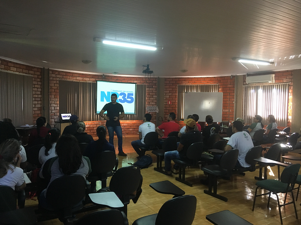 O foco do treinamento foi a Norma Regulamentadora 35 (NR 35), que estabelece os requisitos mínimos e as medidas de proteção para o trabalho em altura. Envolve planejamento, organização e execução de forma a garantir a segurança dos trabalhadores envolvidos na atividade.