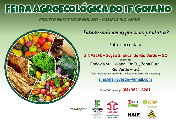 O projeto de extensão "Feiras do IF Goiano" entra na etapa de exposição e comercialização de produtos agroecológicos. A intenção é de que a feira aconteça todas as quintas, das 16h às 21h30, no estacionamento de motocicletas do Campus Rio Verde.