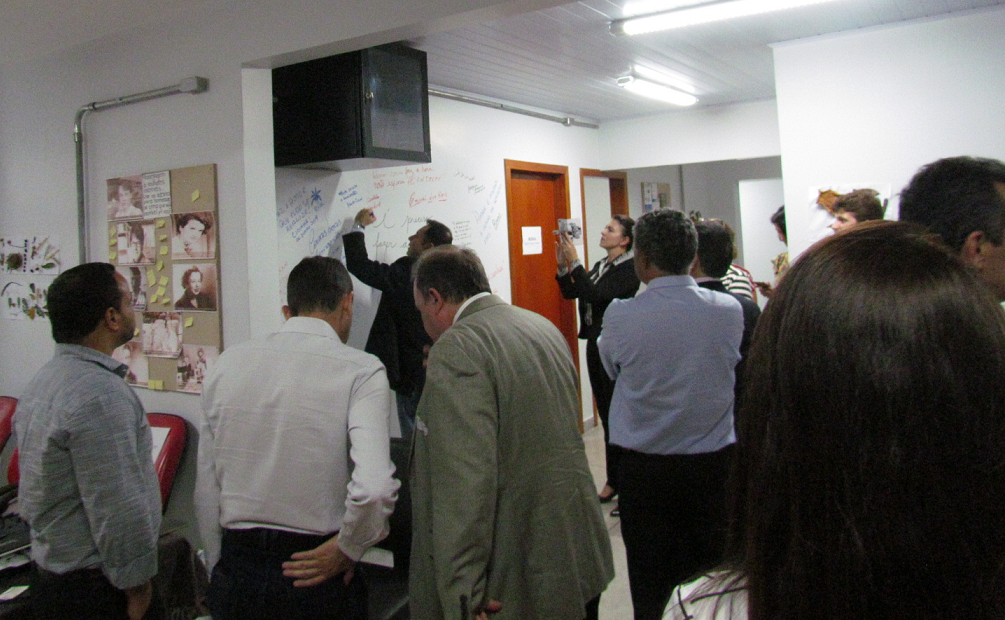 O Secretário encerrou a sua visita deixando sua mensagem em uma das paredes da Casa de Cultura.