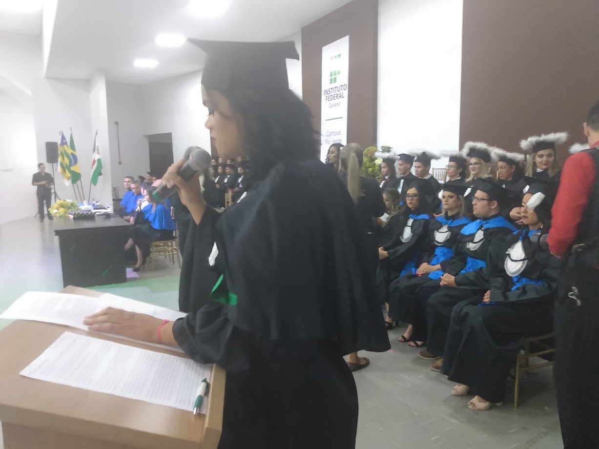 Nos dois dias de solenidade de formatura, o reitor do IF Goiano, professor Vicente Pereira de Almeida, esteve presente. Depois de contar um pouco de sua trajetória como ex-aluno do campus, quando este ainda era Escola Agrotécnica, professor Vicente pediu aos formandos para serem ousados, uma vez que estão bem preparados para ocupar os melhores lugares no mundo. “Além dos conhecimentos técnicos, vocês tiveram a oportunidade de desenvolver seus valores humanos”, pontuou. Professor Vicente também os convidou a continuar a jornada acadêmica na instituição, que além dos cursos técnicos e de graduação, também oferece cursos de mestrado e doutorado.