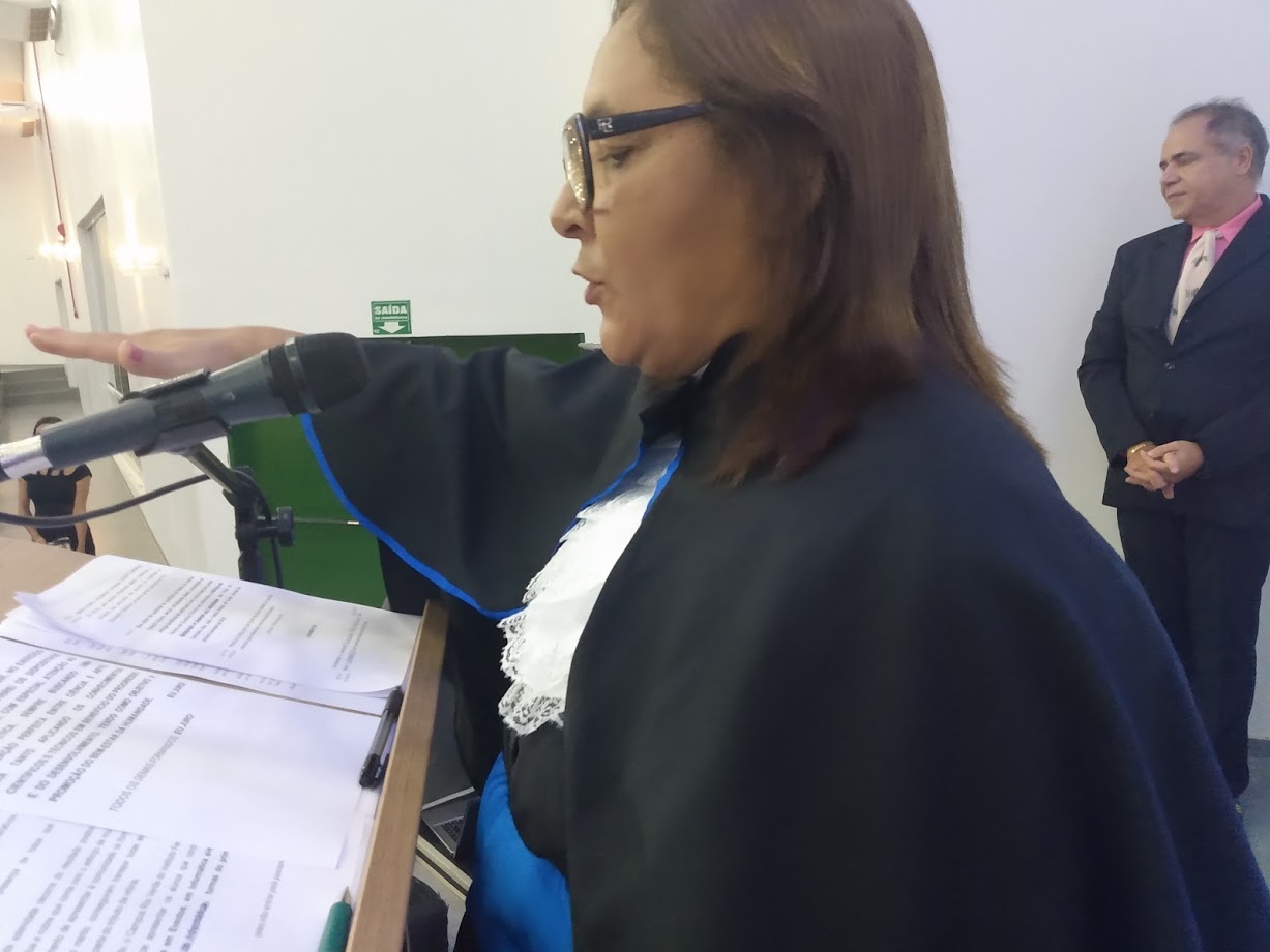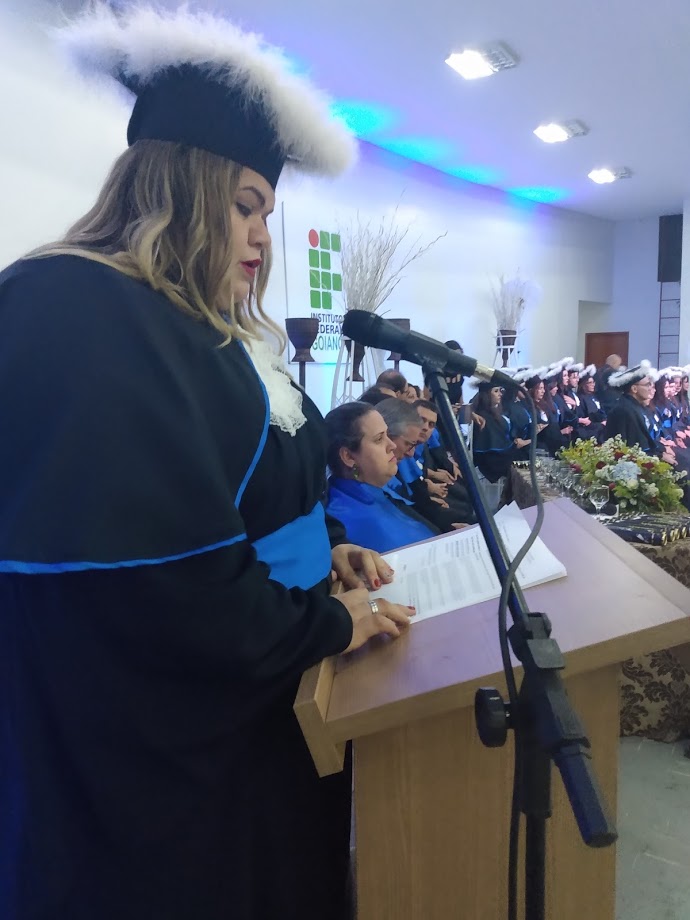Muito emocionada, Francisca Alves Simplício de Oliveira, do curso Técnico em Eventos do Polo de Jataí, conduziu o juramento da turma.