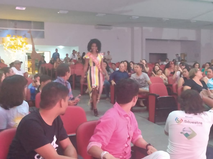 Com roupas e turbantes coloridos e muita graciosidade, um grupo de mulheres desfilou por entre a plateia e terminou sua performance no palco do Art’cum. O momento contou com a participação de Jane, Miss Beleza Negra da América.