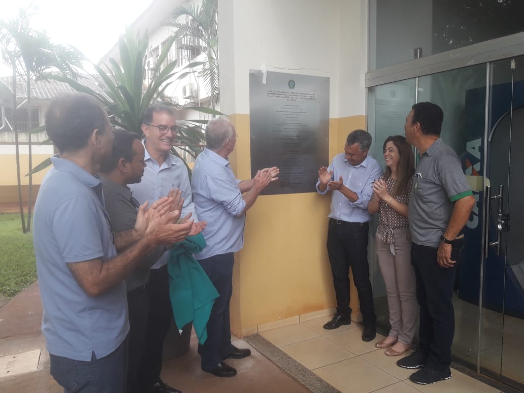 Ao lado de dirigentes do campus, Heuler descerrou uma placa de reconhecimento pela sua contribuição para a edificação do prédio.