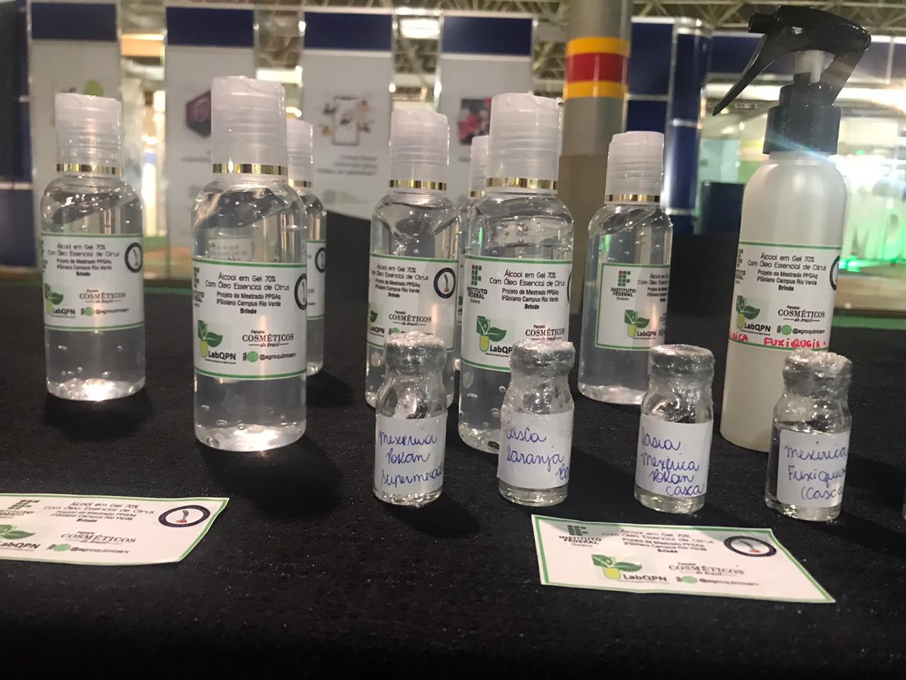 Quem visitou os estandes do IF Goiano teve a oportunidade de conhecer pesquisas relacionadas a diversas áreas, uma delas, é a extração de óleos essenciais citrus para fabricação de cosméticos.