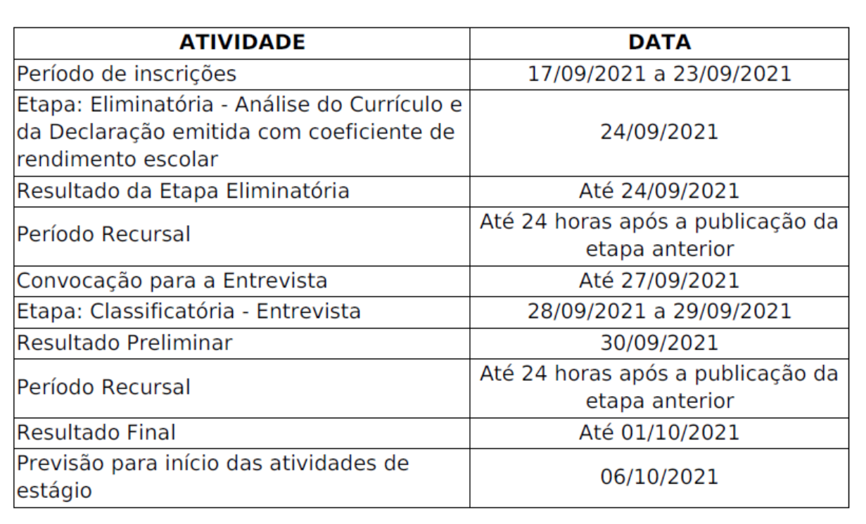 EDITAL DE FLUXO CONTÍNUO PARA SELEÇÃO DE ESTAGIÁRIOS - SETEMBRO/21