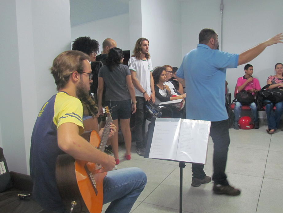 Para conhecer um pouco da instituição, os calouros fizeram um passeio pelas suas dependências. O grupo foi acompanhado do coordenador do curso, professor Carlos Sobrinho, que preparou uma surpresa aos novos alunos no fim da caminhada: uma parada na Casa de Cultura onde estavam os músicos do NAIF. Além da animação, proporcionada pela música, os calouros puderam interagir com os novos colegas.
