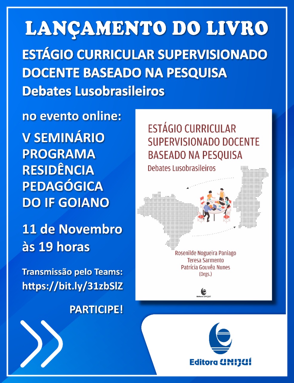 19:10h às às 19.30 – Lançamento livro e apresentação Experiência Projeto Institucional IF Goiano - Dra. Rosenilde Nogueira Paniago, Campus Rio Verde