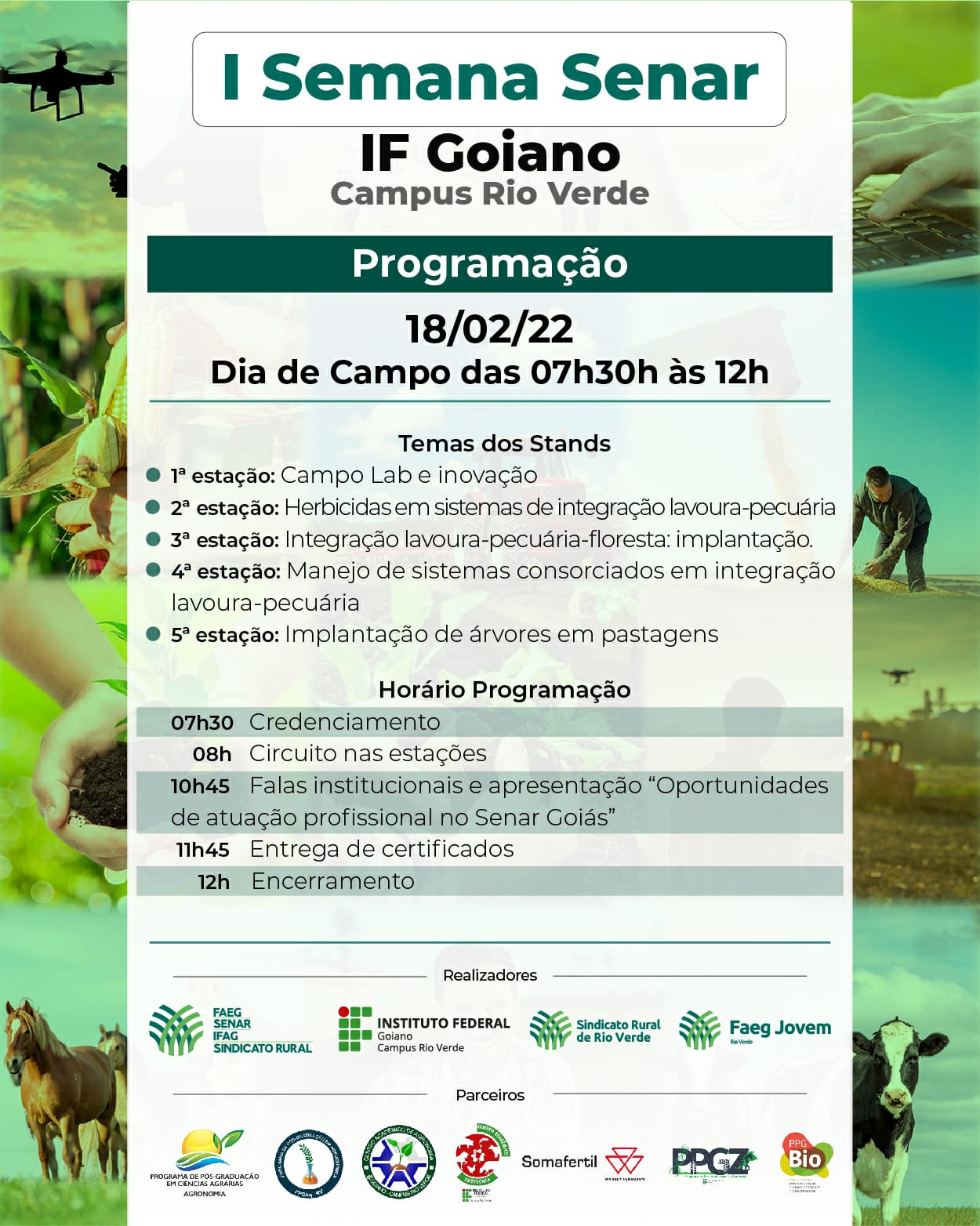 Na sexta, dia 18, a partir das 07:30h, será realizado um Dia de Campo no campus para apresentação de resultado de pesquisa e difusão de tecnologia.