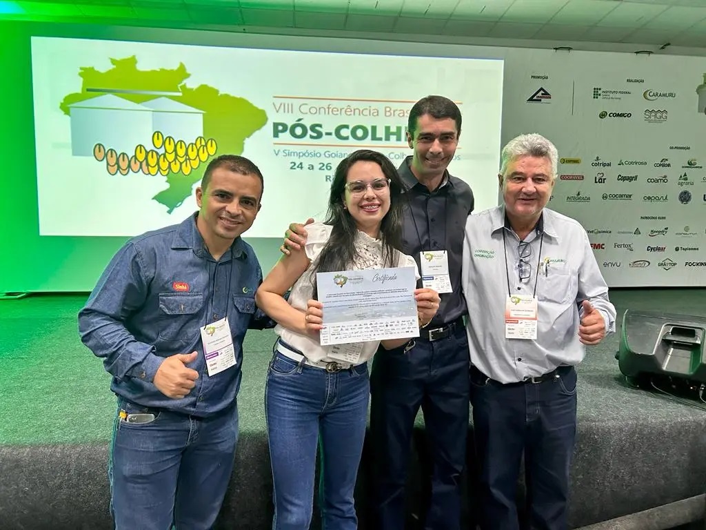 3º lugar: Monitoramento de CO2 associado com a qualidade dos grãos de soja armazenados em diferentes teores de água. Autores: Diene Gonçalves Souza; Osvaldo Resende, Jacson Zuchi; Paulo Victor Alcantara Ferreira, Geraldo Acácio Mabasso; Jaqueline Ferreira Vieira Bessa.