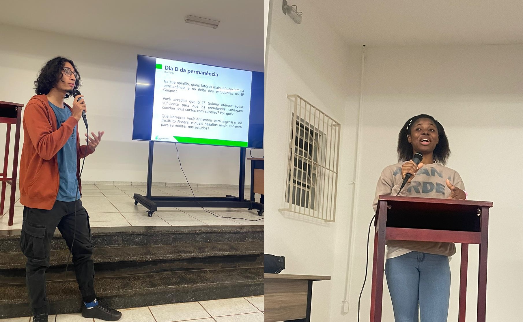 Dentre os participantes, João Paulo Cruvinel, do curso de Engenharia Química, e Kodoume Ange-Trifenne Batcho, de Benin, país africano. A estudante falou sobre sua experiência como aluna estrangeira no IF Goiano, cursando o Mestrado em Administração.