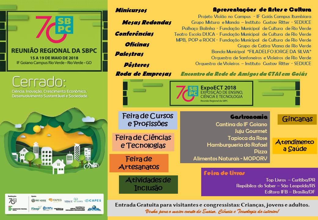 Estamos a poucos dias da realização da Reunião Regional da SBPC e ExpoECT2018, que será de 15 a 19 de maio. Até o momento, a comissão científica contabiliza mais de 1.600 inscritos de 16 estados e DF. Interessados ainda podem se inscrever até o dia 14 de maio.