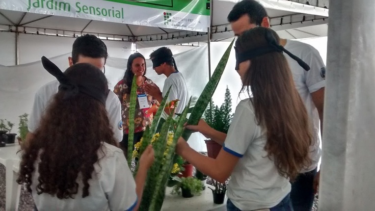 Já nas tendas dentro do Complexo de Eventos, muita coisa para conhecer, e claro, conhecer da melhor forma possível que é por meio da interação, a exemplo do Jardim Sensorial, em que os visitantes são desafiados a reconhecer cheiros e espessuras de plantas com os olhos vendados.