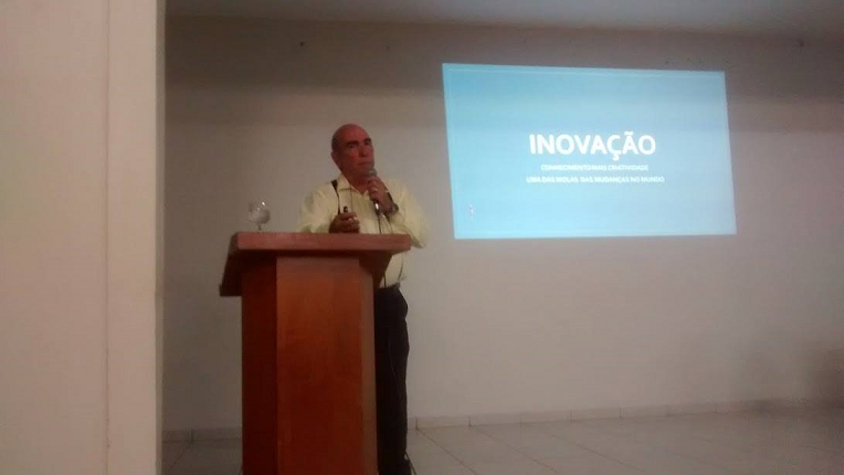 Professor Luiz Carlos discorreu sobre a inovação que segundo ele, deriva de conhecimento mais criatividade e provoca mudanças no mundo. Durante sua exposição, falou da evolução do processo industrial, enfatizando o avanço da tecnologia e sua importância em diversas áreas, como a medicina, produção agrícola, gestão, produção industrial, comunicação, gestão, dentre outros.