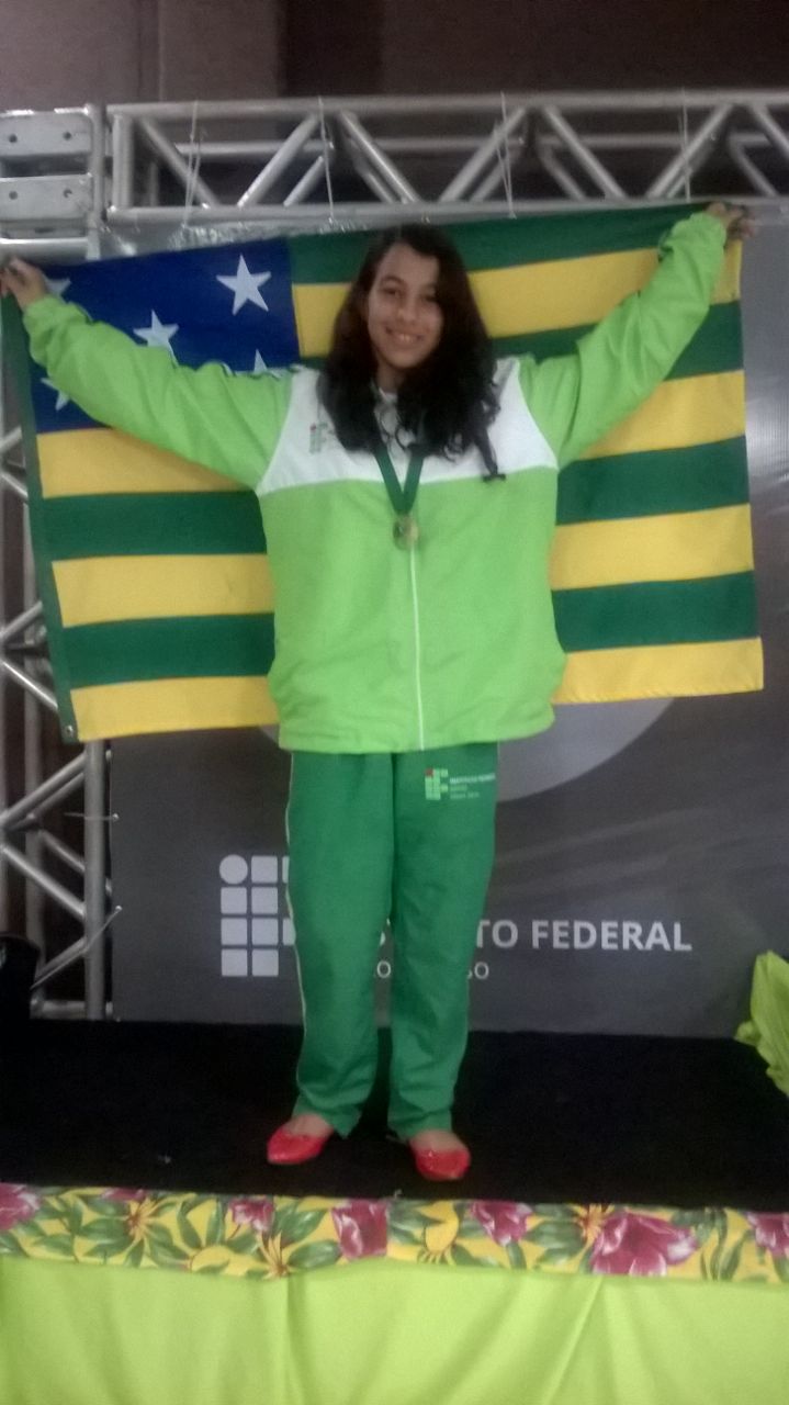 No último sábado (10/9), a aluna Thífany Moraes Rocha conquistou o 2º lugar nos 100 e 200 metros rasos, no Campeonato Goiano de Atletismo, realizado na Faculdade de Educação Física da Universidade Federal de Goiás (UFG), em Goiânia.