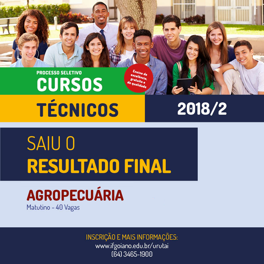 O processo seletivo é para o curso técnico em agropecuária. Foram ofertadas 40 vagas.