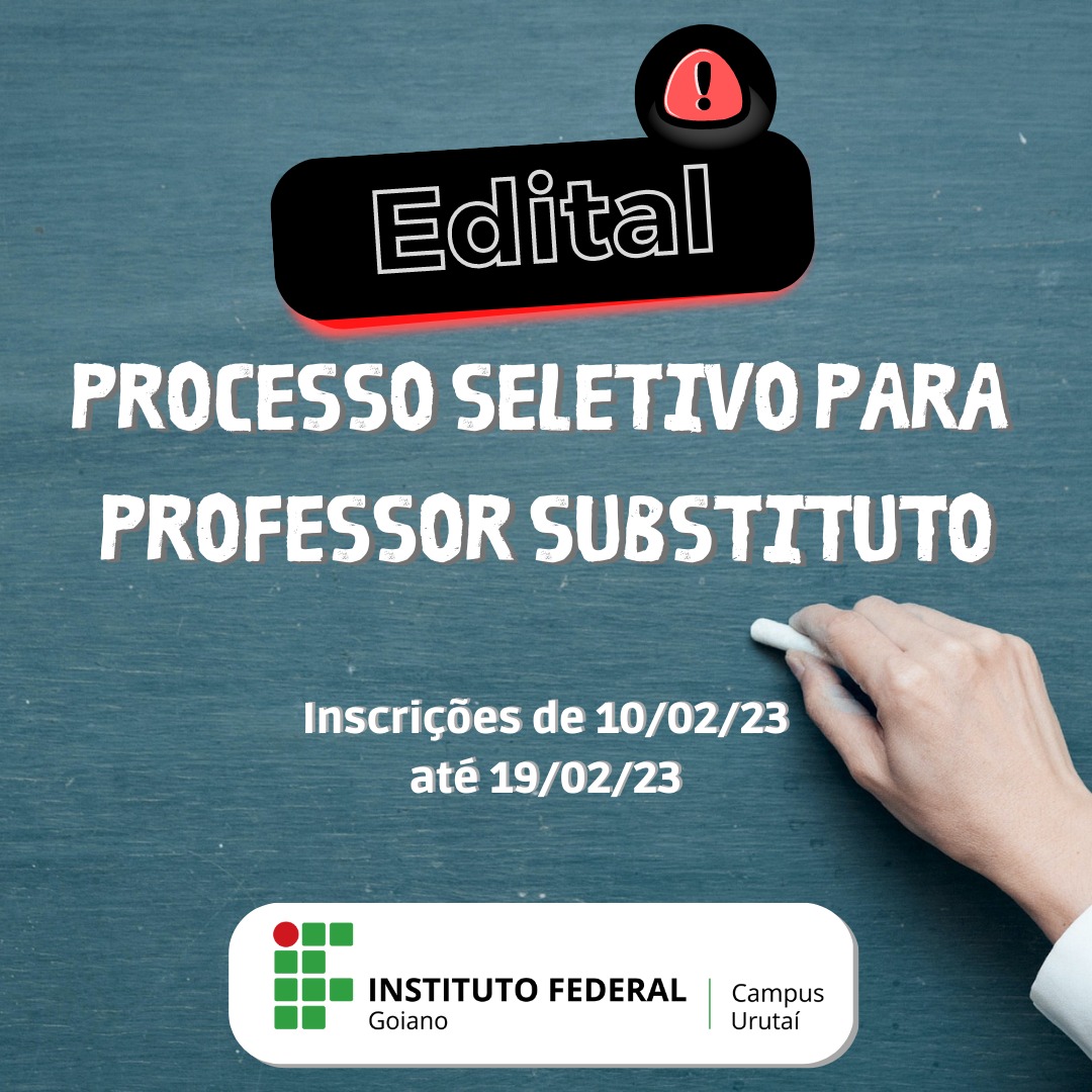 O Instituto Federal Goiano (IF Goiano) - Campus Urutaí lança Edital de Processo Seletivo para contratação de Professor Substituto, por tempo determinado.