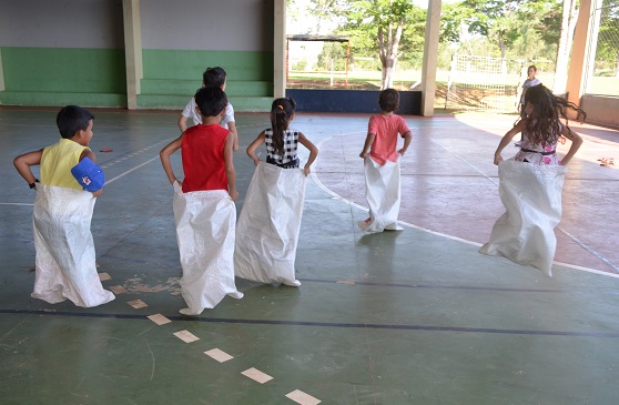 Na quadra, os alunos do Programa PET Bio já os aguardavam para uma gincana com pique-bandeira, pique-pega, corrida de sacos e de carrinho-de-mão. Como brincar dá um fome danada, todos se reuniram para lanchar. No encerramento, as crianças receberam presentes que foram doados pelos servidores da instituição.