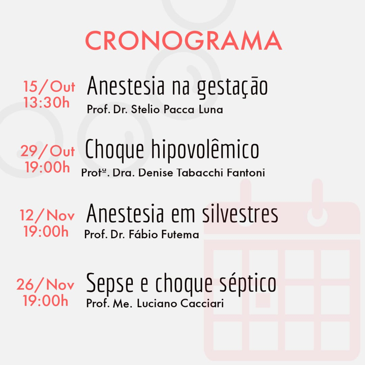 Devido a pandemia da COVID-19 e a impossibilidade de execução das atividades presenciais, o Campus Urutaí do Instituto Federal Goiano (IF Goiano), por meio da Liga Acadêmica de Anestesiologia e Medicina Intensiva Veterinária (LAAMIV) irá promover um evento online e gratuito, nomeado como Maratona Acadêmica LAAMIV. Durante o evento, que ocorrerá ao longo de todo o segundo semestre, e terá como público alvo acadêmicos de cursos de Medicina Veterinária e Médicos Veterinários, os participantes poderão contar com palestras que serão realizadas por profissionais renomados nacionalmente.
