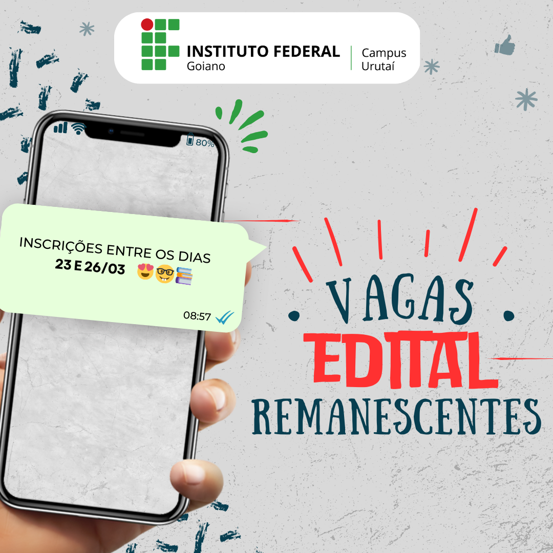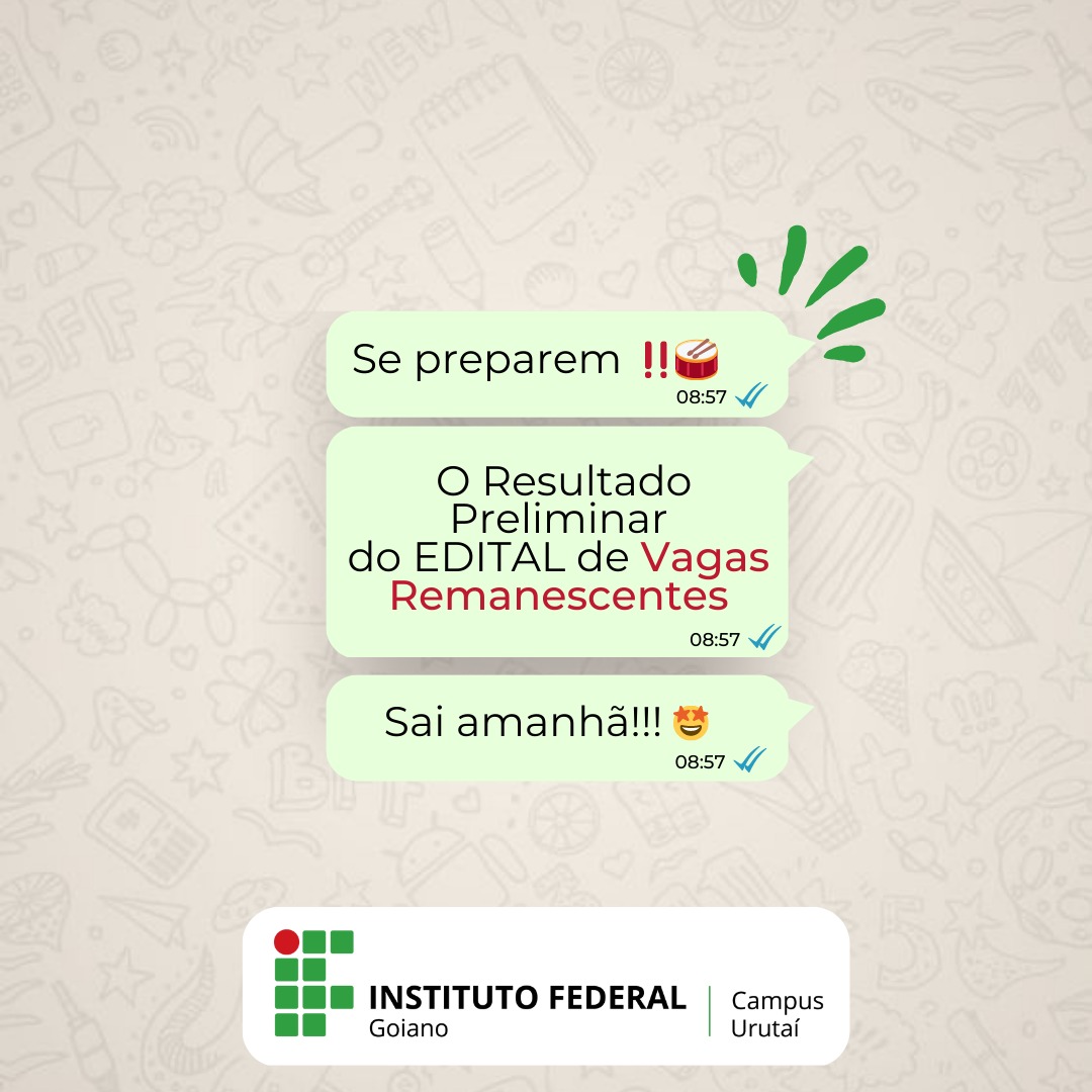 IF Goiano - Campus Urutaí divulga resultado preliminar do Edital de Vagas Remanescentes dos Cursos Superiores